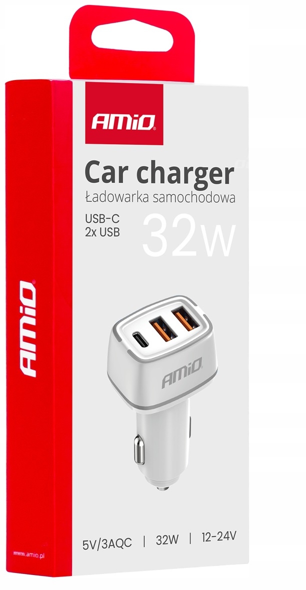 Автомобильное зарядное устройство для автомобиля 2x USB-A + USB-C 32Вт БЕЛЫЙ БЕЛЫЙ 12В 24В