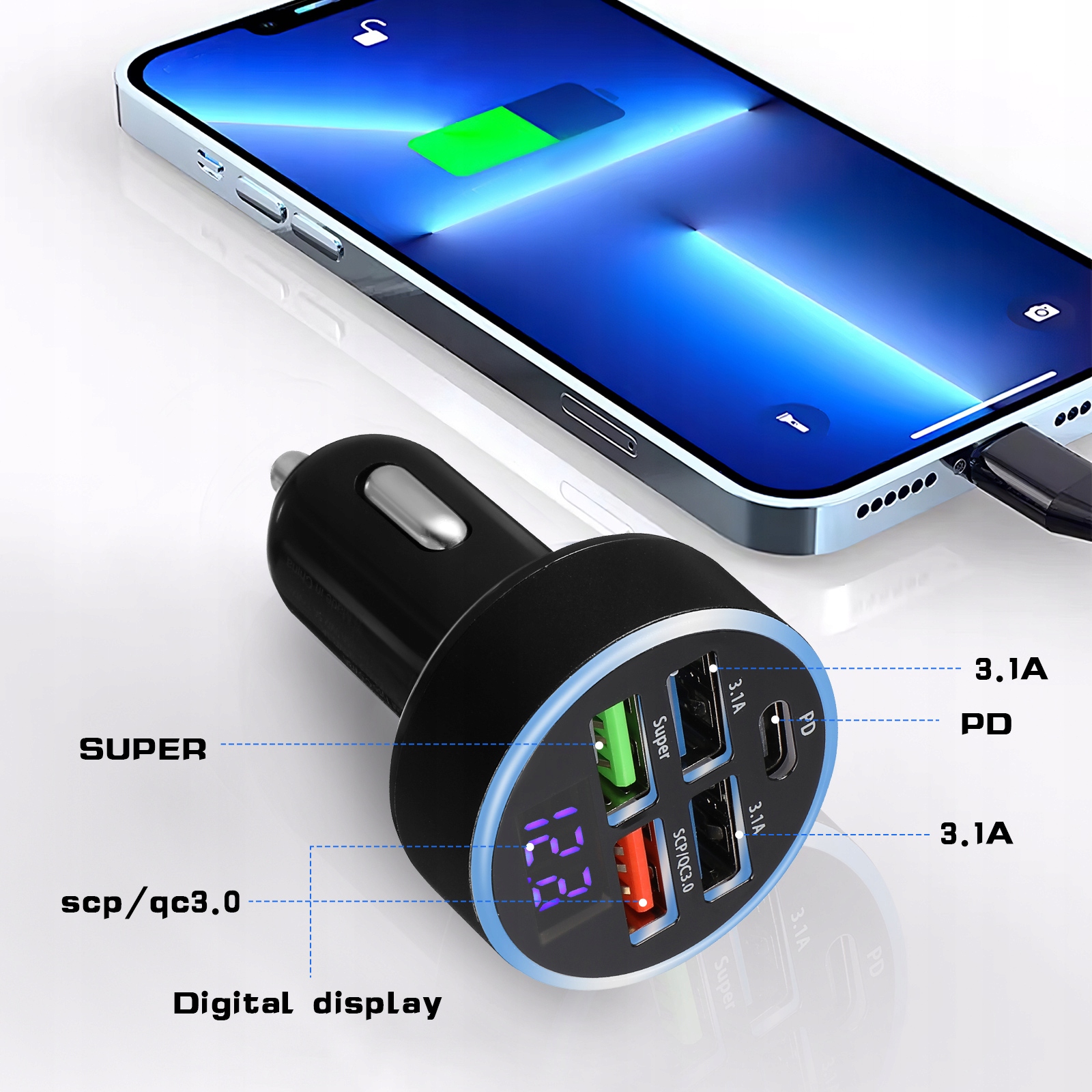 ✅ Цифровое дисплей: Встроенный цифровой дисплей в автомобильном зарядном устройстве позволяет отслеживать напряжение в режиме реального времени, обеспечивая безопасную зарядку.