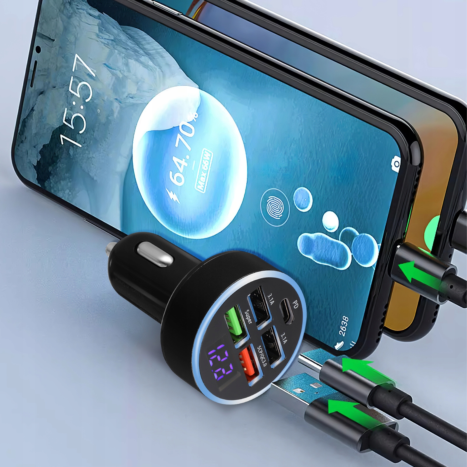 Автомобильное зарядное устройство с пятью портами — универсальное и практичное устройство, позволяющее заряжать множество устройств одновременно. Функция цифрового дисплея обеспечивает четкое и интуитивно понятное представление напряжения, обеспечивая безопасность ваших устройств. Это зарядное устройство, разработанное специально для использования в автомобиле, позволяет удобно заряжать устройства на открытом воздухе.