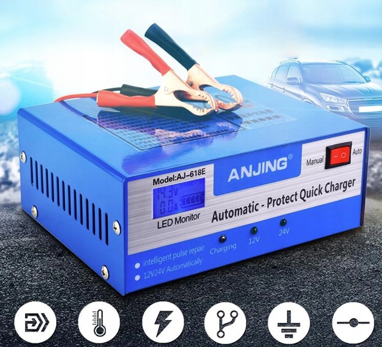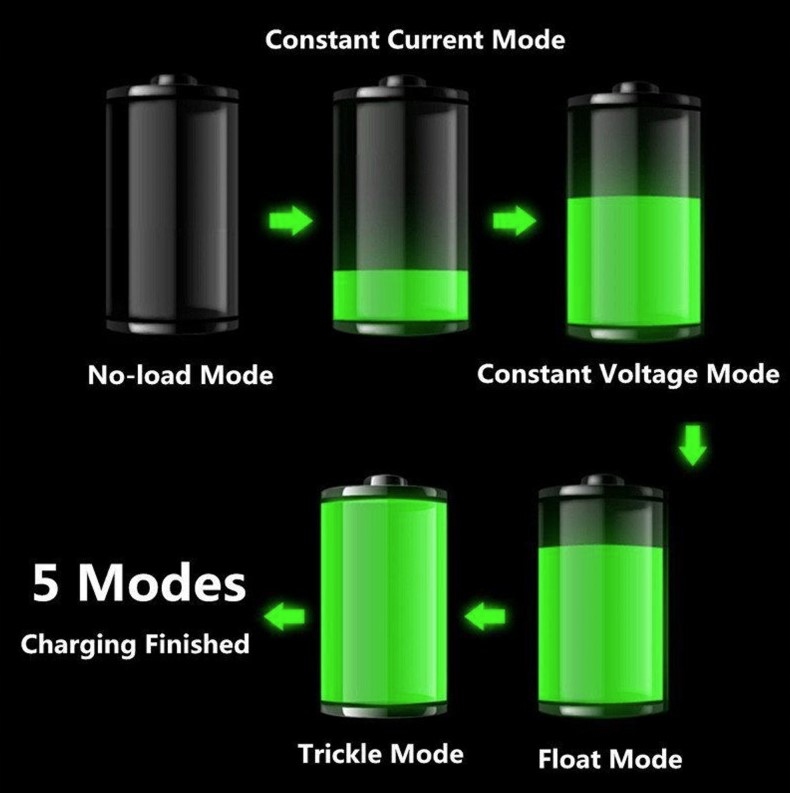 Подходит для аккумуляторов 12 В и 24 В, работает с SLA, WET, MF, FLOODED, GEL, VRLA, AGM, EFB, что означает, что его можно использовать для аккумуляторов в автомобилях, мотоциклах, лодках, газонокосилках, сельскохозяйственной технике и других.