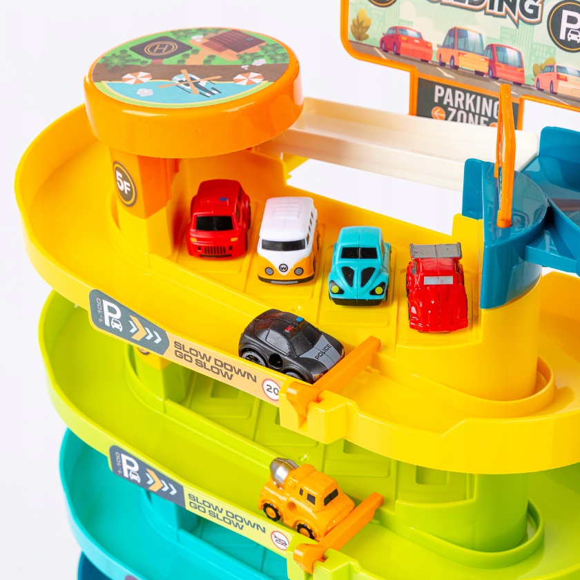 Этот интересный набор сочетает в себе электрические и ручные функции, что позволит вашему ребенку создать незабываемое развлечение с машинками. Благодаря функции поворота автомобиль движется вверх, пока не достигнет места назначения - парковки.