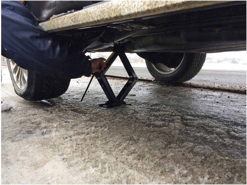 Домкрат имеет вращающуюся на 360° головку, оснащенную специальной резиной, защищающей автомобиль от повреждений.