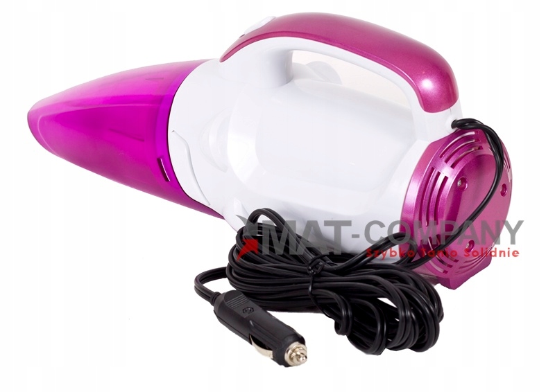 Ручной пылесос для чистки салона автомобиля, с питанием от розетки постоянного тока 12 В. Он оснащен прозрачным резервуаром, позволяющим оператору контролировать уровень наполнения.