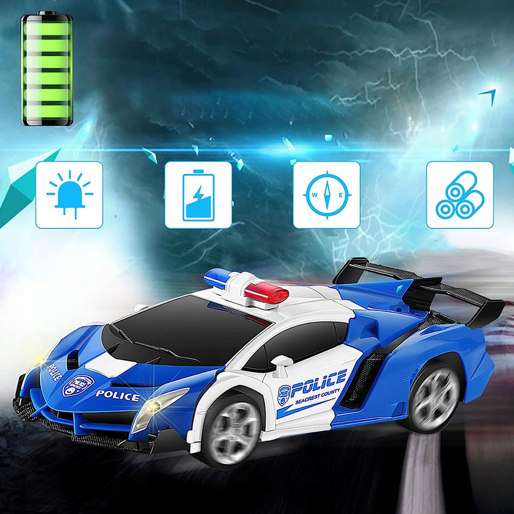Просто нажмите одну кнопку на пульте и игрушка, передающая машинку, превращается в ПОЛИЦЕЙСКУЮ МАШИНУ. Ваш ребенок может самостоятельно решить, как и во что он хочет играть. Игрушка развивает воображение и гарантирует продолжительное удовольствие.