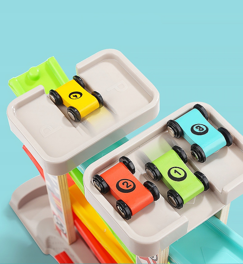 Дорожка готова к использованию прямо из коробки,не требует никакого питания. Поставьте машину на самую высокую платформу, отпустите и посмотрите, как быстро она опустится! Все проходит очень гладко, справится даже самый младший!