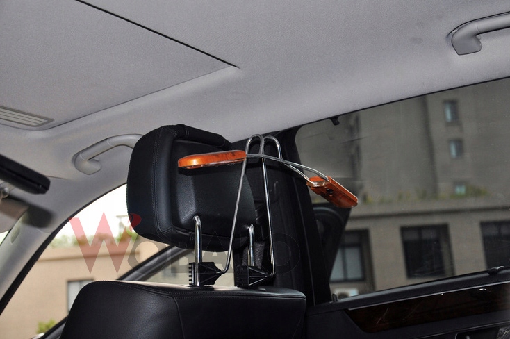 Хромированная автомобильная вешалка. Создан специально для людей, которые заботятся о безупречном внешнем виде своего наряда. Позволяет прикрепить его к задней части подголовника водителя или пассажира, или к тому и другому. Идеально подходит для путешествий.