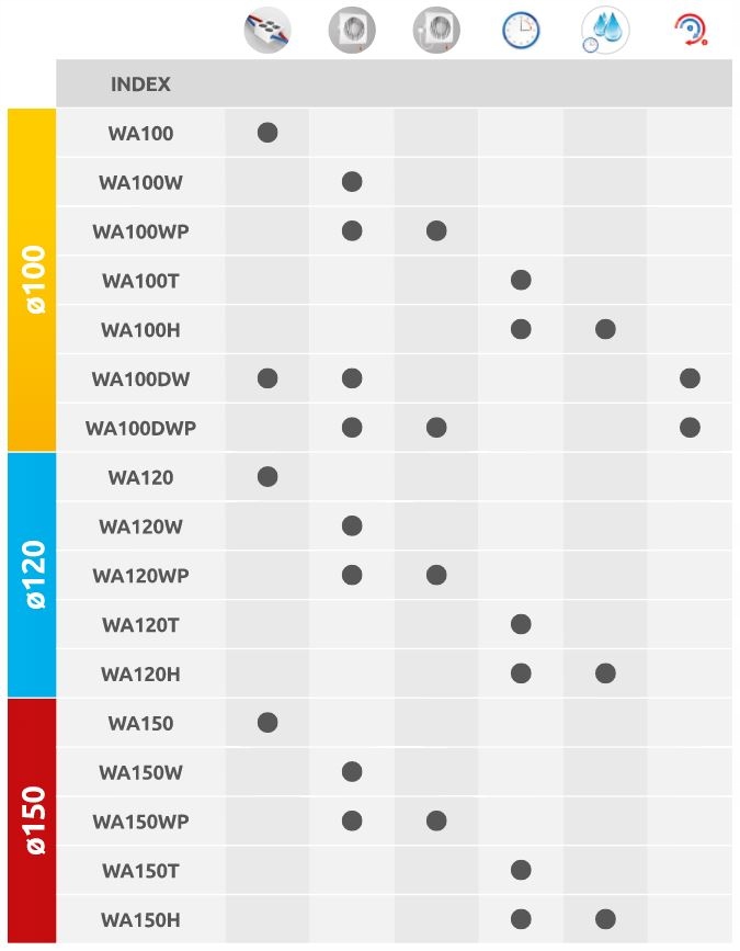 фанаты awnta производятся во всех размерах, используемых в домохозяйствах и коммунальных помещениях, таких как гаражи, мастерские, а также гастрономия. Продукты Awenta, разработанные в Центре исследований и разработок компании, перед тем, как поступить в производство, подвергаются специализированным тестам в лаборатории AWNTA, а затем строгий контроль качества на каждом этапе сборки.