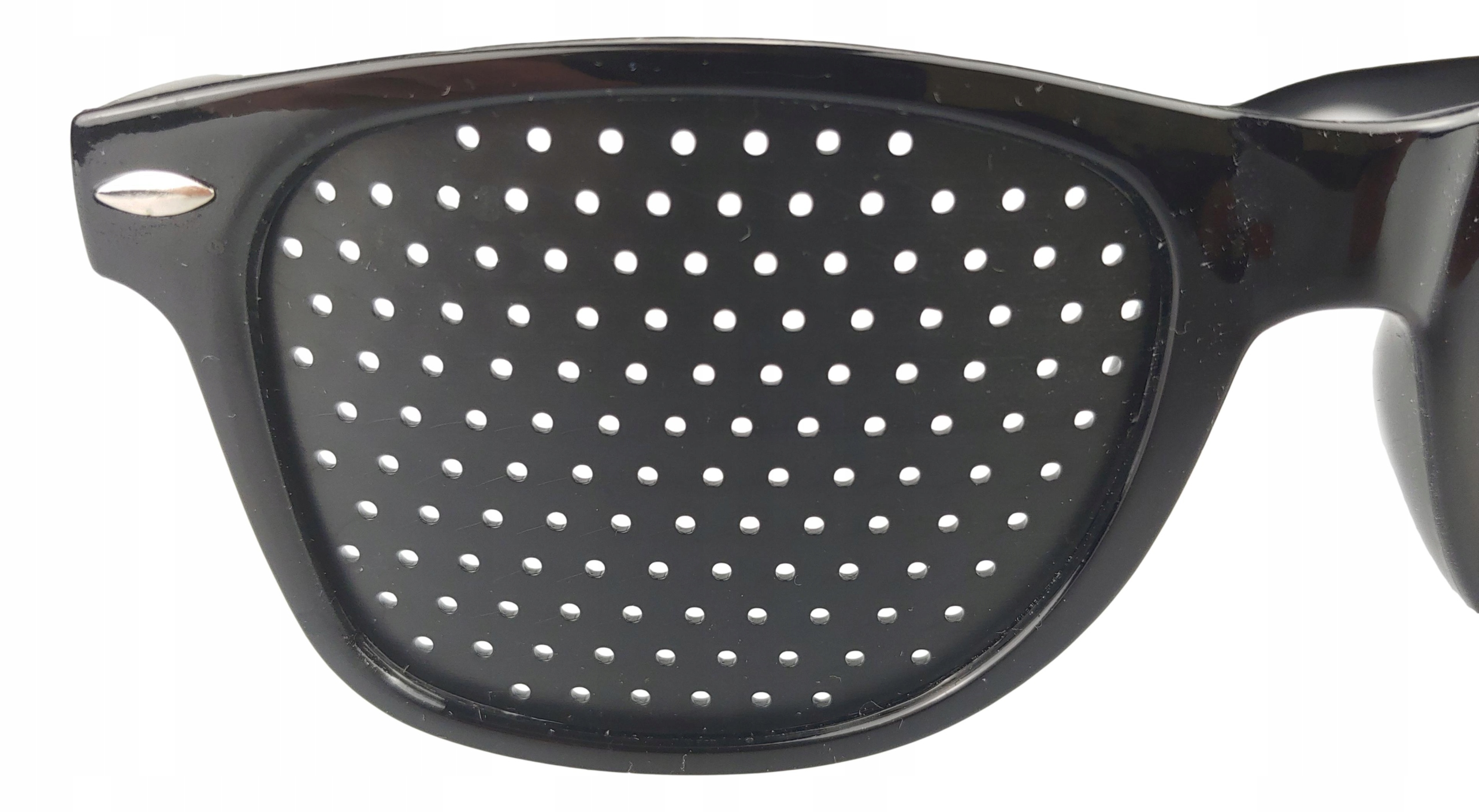 - корректирует дефекты зрения благодаря специально расположенным отверстиям