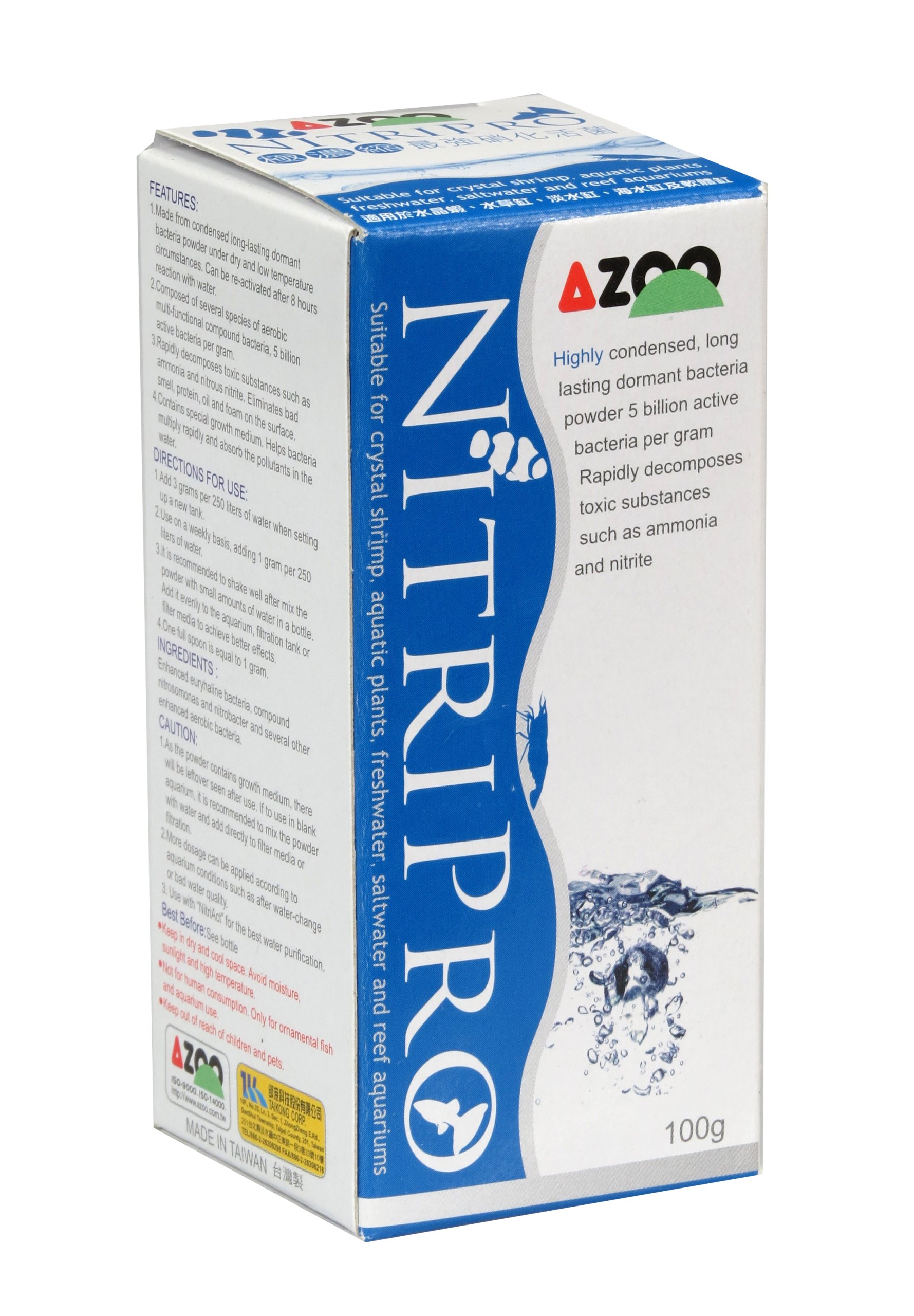 AZOO NitriPro — это специализированные и универсальные культуры нитрифицирующих бактерий высочайшего качества. Регулярное использование помогает очень быстро установить биологический баланс в новых аквариумах и укрепляет систему фильтрации в существующих аквариумах. Регулярно используемые бактерии создают сильные и долговечные колонии бактерий, способные расщеплять очень большие количества аммиака и нитритов* до наименее вредной формы азота, то есть нитратов. Правильная циркуляция азота, ускоряемая специализированными бактериями Azoo, весьма положительно влияет на самочувствие рыб и креветок, повышает их жизненный тонус, устраняет пугливость, прятание в темных местах аквариума и исключает смертность, связанную с накоплением ядовитого аммиака. Правильный, улучшенный метаболизм рыб и ракообразных обеспечивает здоровый рост и заметное повышение устойчивости к стрессу и болезням. Препарат существенно повышает чистоту воды. Кроме того, порошкообразные бактерии, содержащиеся в AZOO NitriPro, удаляют с поверхности воды неприятные запахи, белки, жиры и пену. AZOO NitriPro состоит из наибольшего количества штаммов сильных аэробных бактерий для максимального эффекта. Бактерии, содержащиеся в препарате, находятся в состоянии покоя и встречаются в максимально возможной концентрации — 5 миллиардов на 1 г.