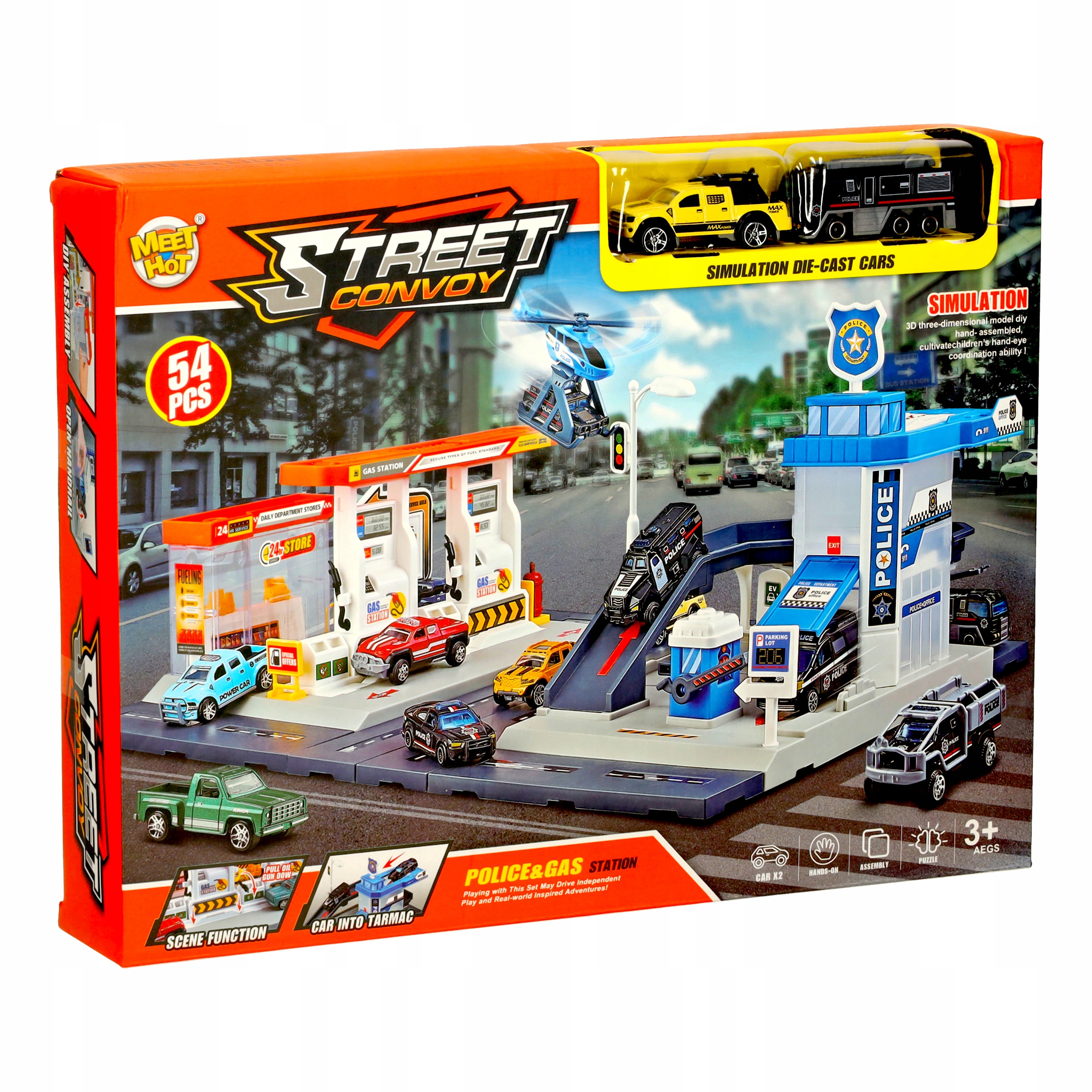 ИГРУШКА ДЛЯ ДЕТЕЙ АЗС ПОЛИЦИЯ ПАРКОВКА МАШИНКИ БОЛЬШОЙ НАБОР 54 ЭЛЕМЕНТА