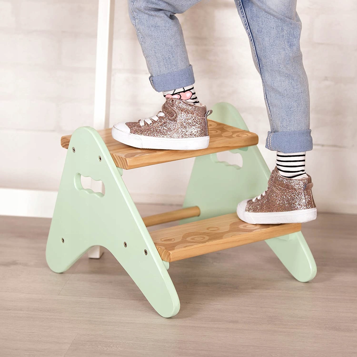 Б. space Устойчивая детская деревянная подставка для ног - табурет, табурет с 2 ступеньками - мятный Детская мебель, для ванной, кухни, детской комнаты от 2 лет