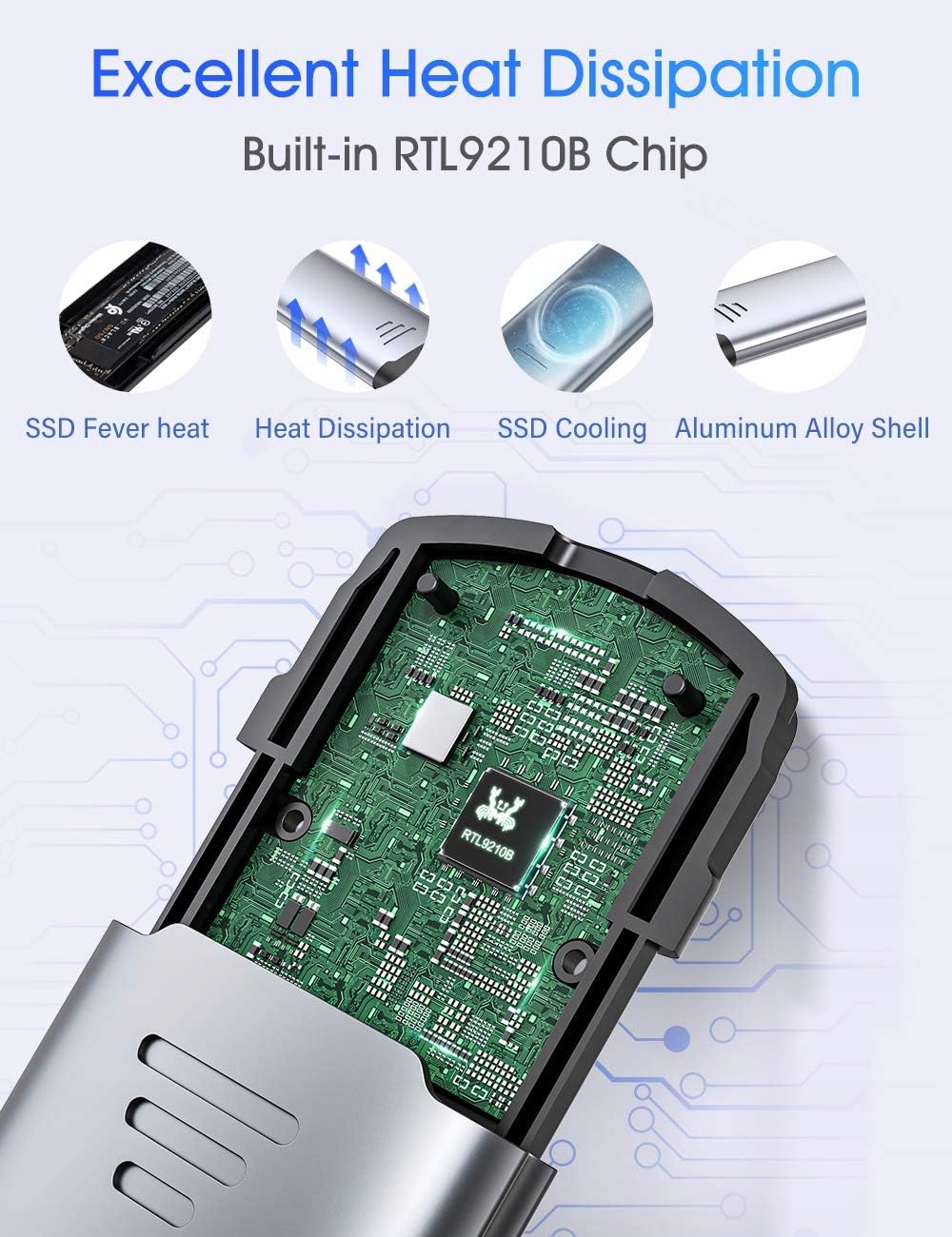- Super Fast Speed: благодаря разъему USB 3.2 Type C, этот корпус жесткого диска M.2 NVME поддерживает скорость передачи до 10 Гбит/с до 20 раз быстрее, чем USB 2.0, благодаря каким большим количествам данных можно отправлять всего за несколько секунд. Использует высокоуровневый контрольный чип RTL9210B, обеспечивает ровную и быструю передачу и максимизирует производительность этого M.2 NVME NGFF-SSD. Идеальное решение для передачи данных и резервного копирования.