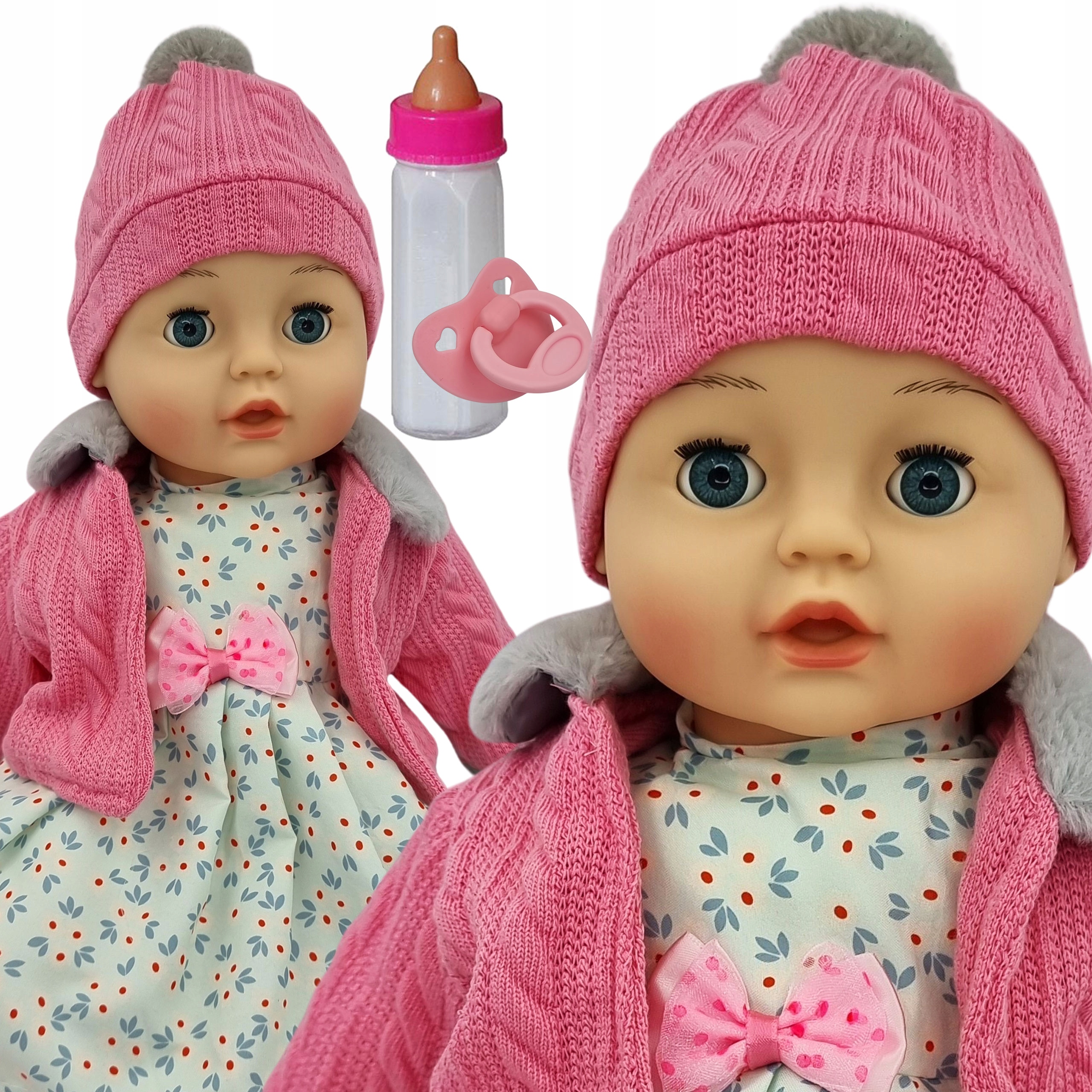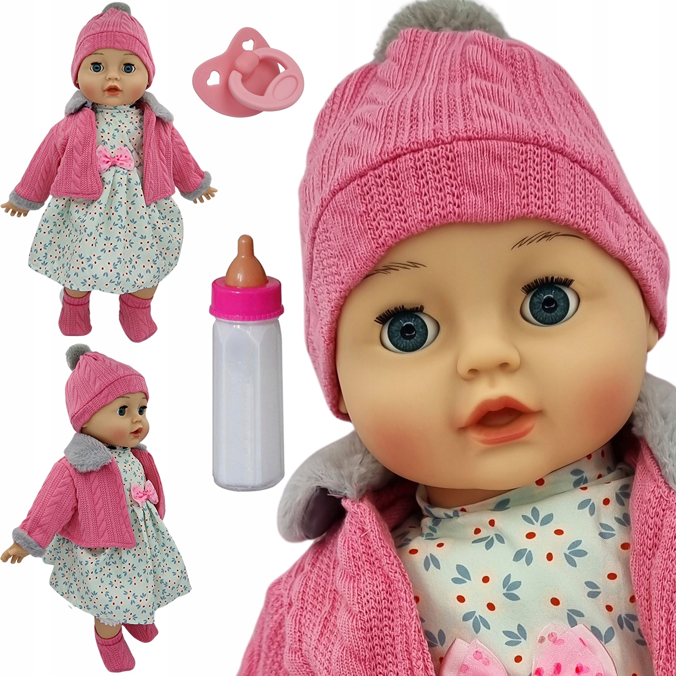 КУКЛА ГОВОРИТ И ПОЕТ НА ПОЛЬСКОМ ЯЗЫКЕ ЗАКРЫВАЯ ГЛАЗА 45СМ + соска + бутылочка_11