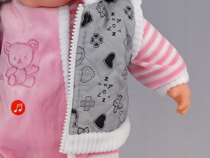 Игрушка интерактивная - она издает звуки, что делает игру еще более увлекательной для ребенка. Игровой модуль расположен на животе в кармане, застегивающемся на липучке, что обеспечивает легкий доступ.