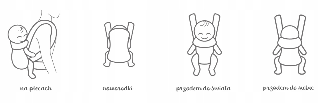 Рюкзак-кенгуру ONE позволяет носить ребенка на двух разных высотах. Более высокое положение рекомендуется для новорожденных с массой тела мин. 3,5 кг. Тогда ребенок располагается выше, ближе к лицу воспитателя. Нижний предназначен для детей старшего возраста. Правильная поза, независимо от возраста, — это когда можно поцеловать малыша в головку.