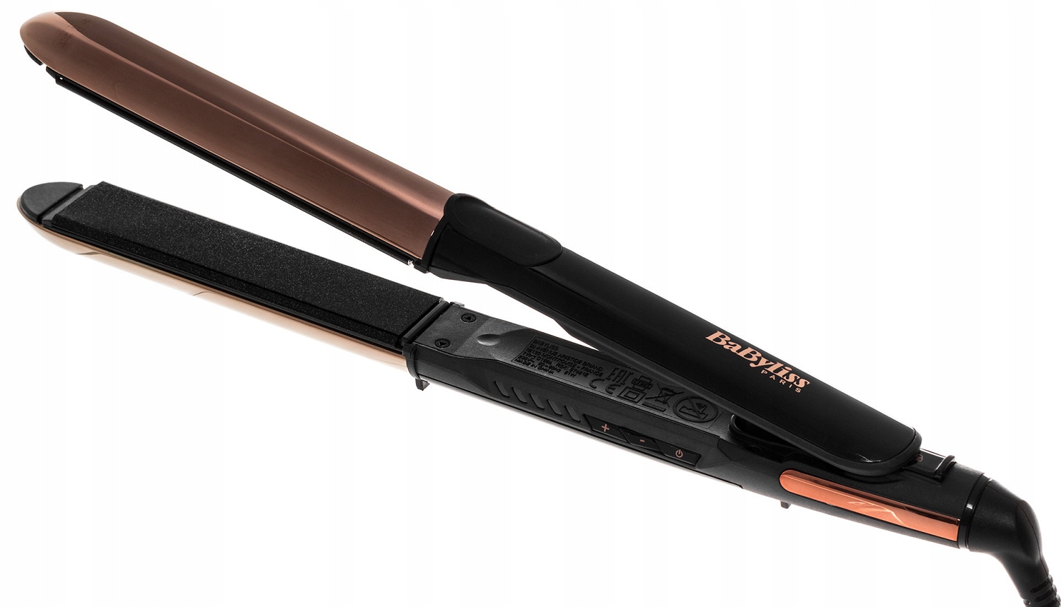 Для обеспечения безопасного использования выпрямитель BABYLISS ST482E оснащен поворотным шнуром, предотвращающим повреждение кабеля питания. Кроме того, две силиконовые ручки для размещения на пластинах позволяют проводить удобную и безопасную укладку, а специально разработанный замок защищает пластины от ненужного смещения.