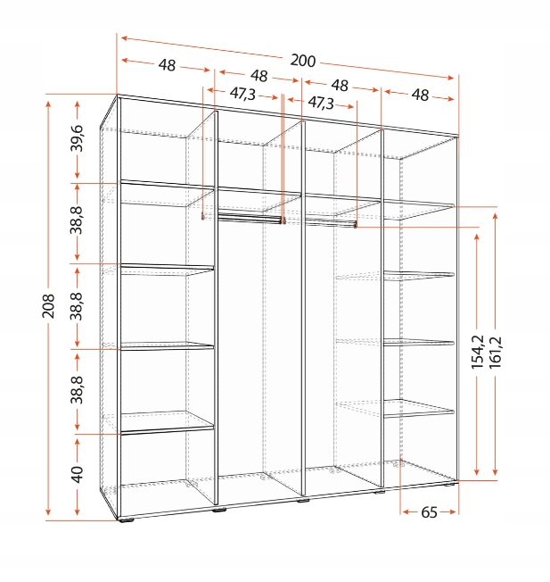 ✔️В спальный гарнитур входит внушительный шкаф-купе с зеркалом и четырьмя традиционно открывающимися дверцами.