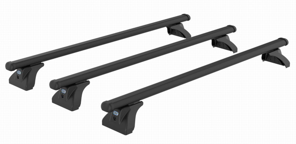 Усиленный комплектный аэродинамический базовый багажник CRUZ Cargo Xpro 2022 с 3 перекладинами и противокражными крышками, установленный в заводских точках для моделей L1H1 и L2H1 >