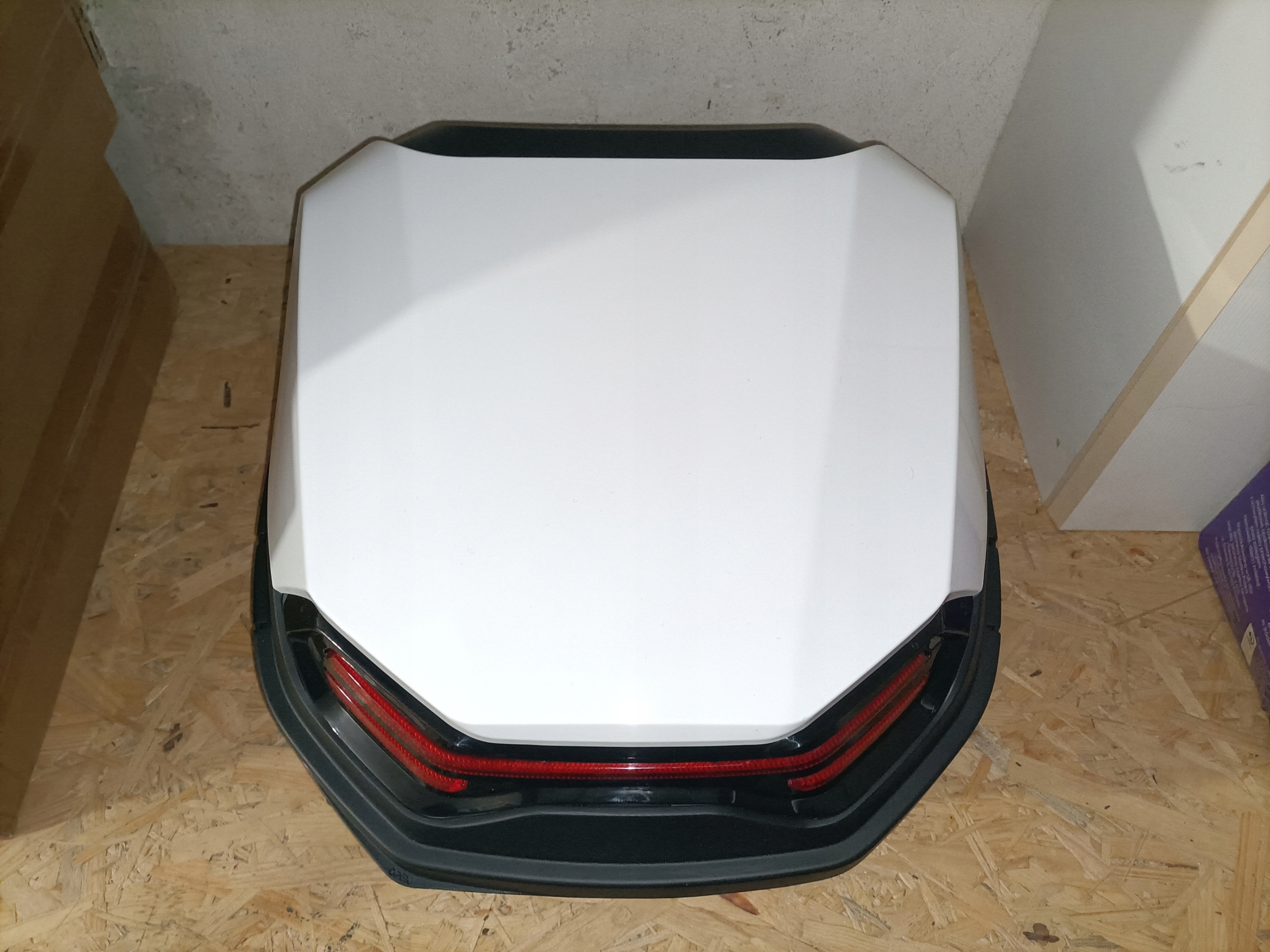 [Удобная спинка]: наш багажник имеет объем 42 литра и оснащен мягкой спинкой. Этот размер верхнего кофра рекомендуется для мотоциклов и скутеров.