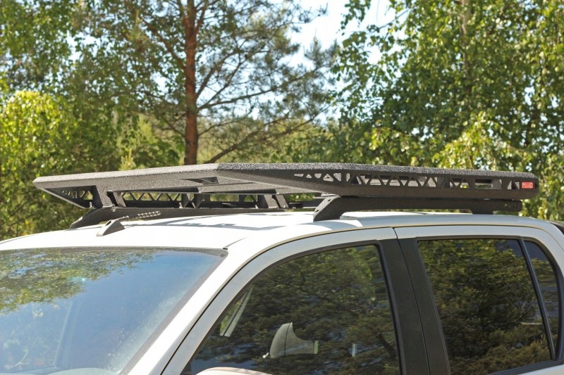 - Площадка плоская сверху и приспособлена для установки тентов на крыше. На верхней поверхности багажника для бездорожья имеются отверстия для удобной установки багажных сеток и вкручивания любых отдельных креплений.