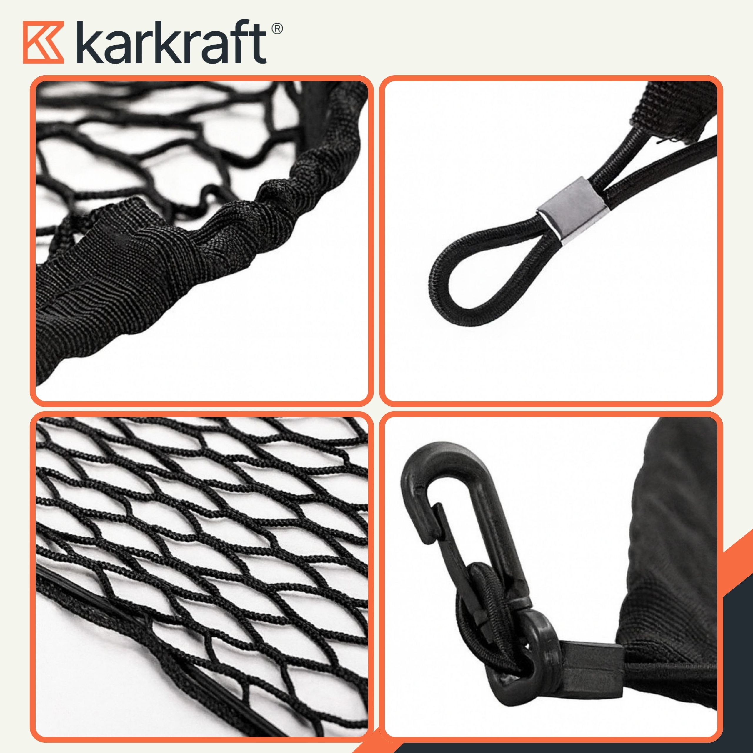 Эластичная сетка для багажника 90 × 40 см создает устойчивый «карман», в котором вещи удерживаются именно там, где вы их положили.