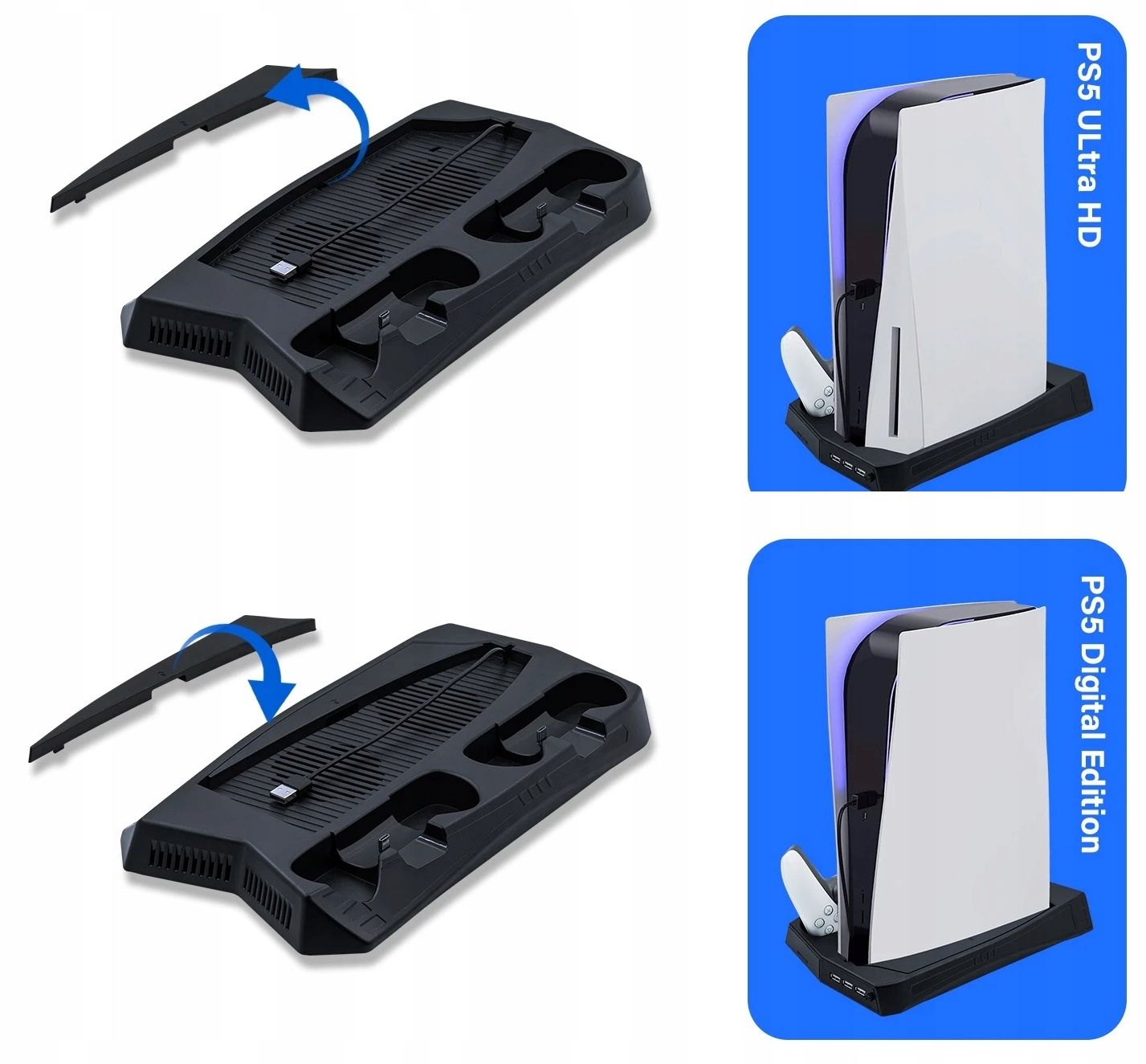 Охлаждающая станция KJH-P5-010 специально разработана для консоли PS5 DE/UHD (PlayStation 5 и PlayStation 5 Digital Edition) и беспроводных контроллеров DualSense.< /п >