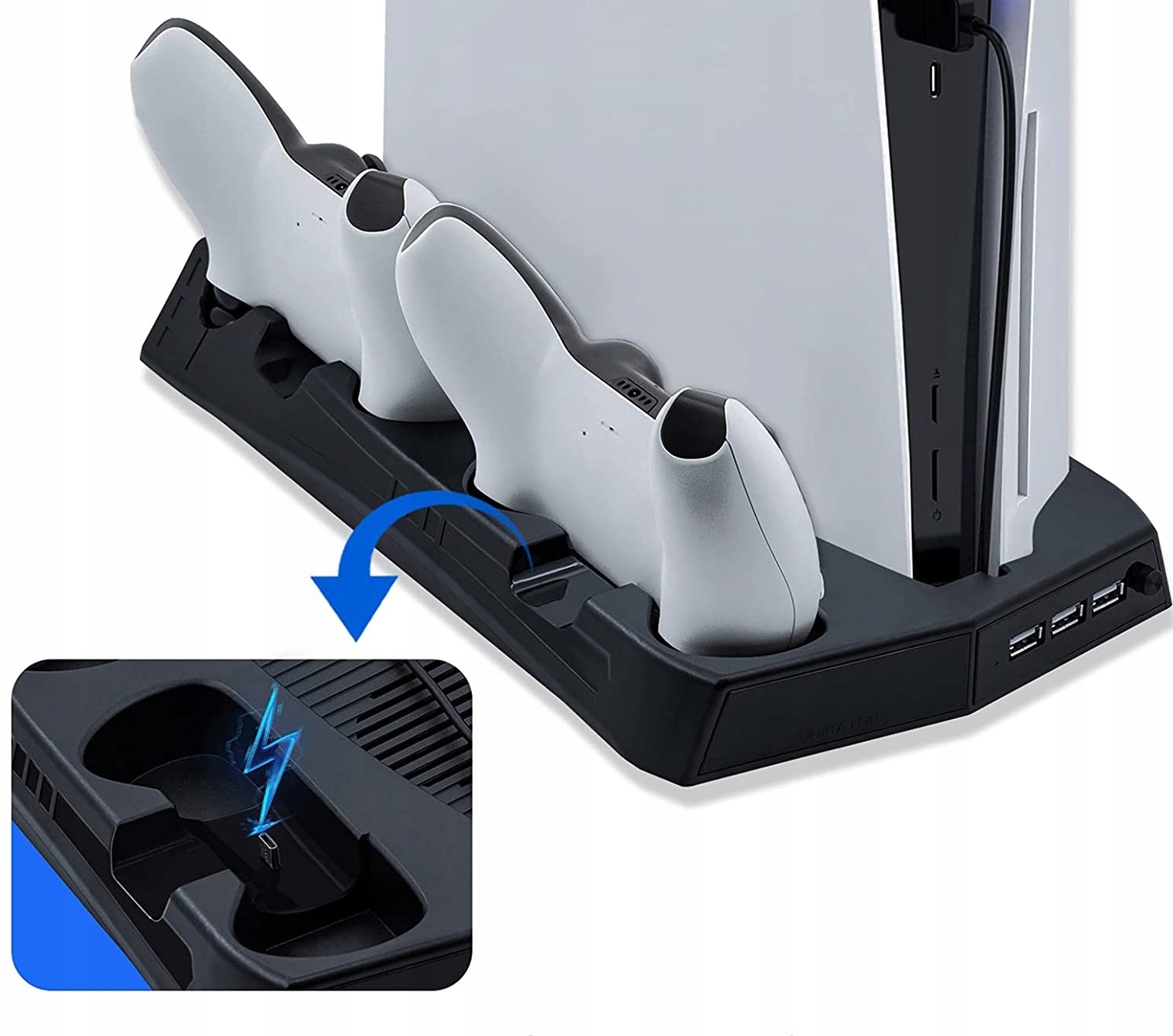 - Станция совместима со всеми контроллерами PS5.