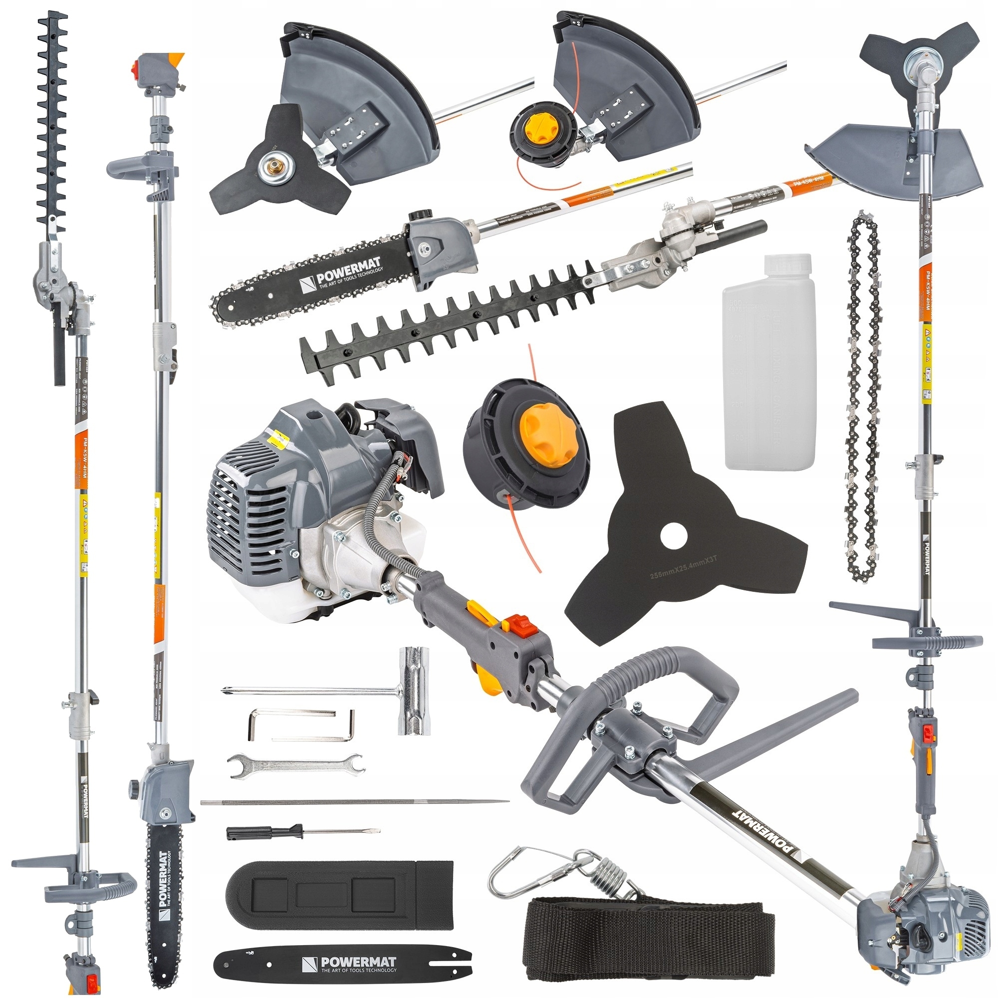 • Многофункциональная бензиновая мотокоса Powermat сочетает в себе функции косы, триммера, пилы и кустореза, обеспечивая универсальность в саду. Мощный двигатель объемом 42 см³, эргономичная ручка, антивибрационная система и плечевой ремень гарантируют комфорт и безопасность. Благодаря сменным насадкам он идеально подходит для скашивания травы, кустарников и обрезки веток – идеален для любителей и профессионалов!