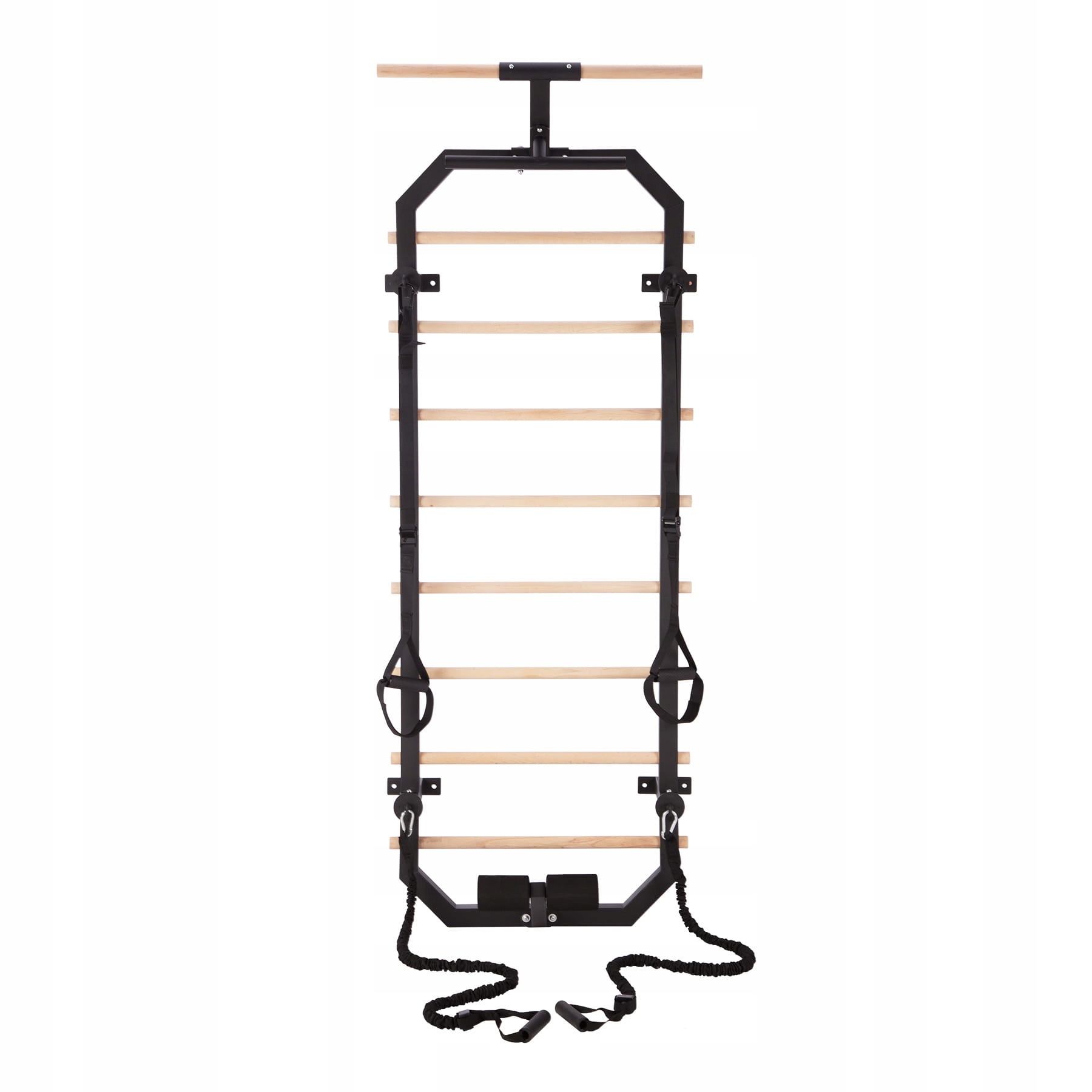 Комплект состоит из гимнастической лестницы, которая крепится к стене, а также специальных резинок и лент. Изделие изготовлено из высококачественного материала. сталь и имеет 8 ступенек из бука. Лестница имеет высоту 223 см и ширину 80 см, поэтому заниматься на ней сможет любой желающий.