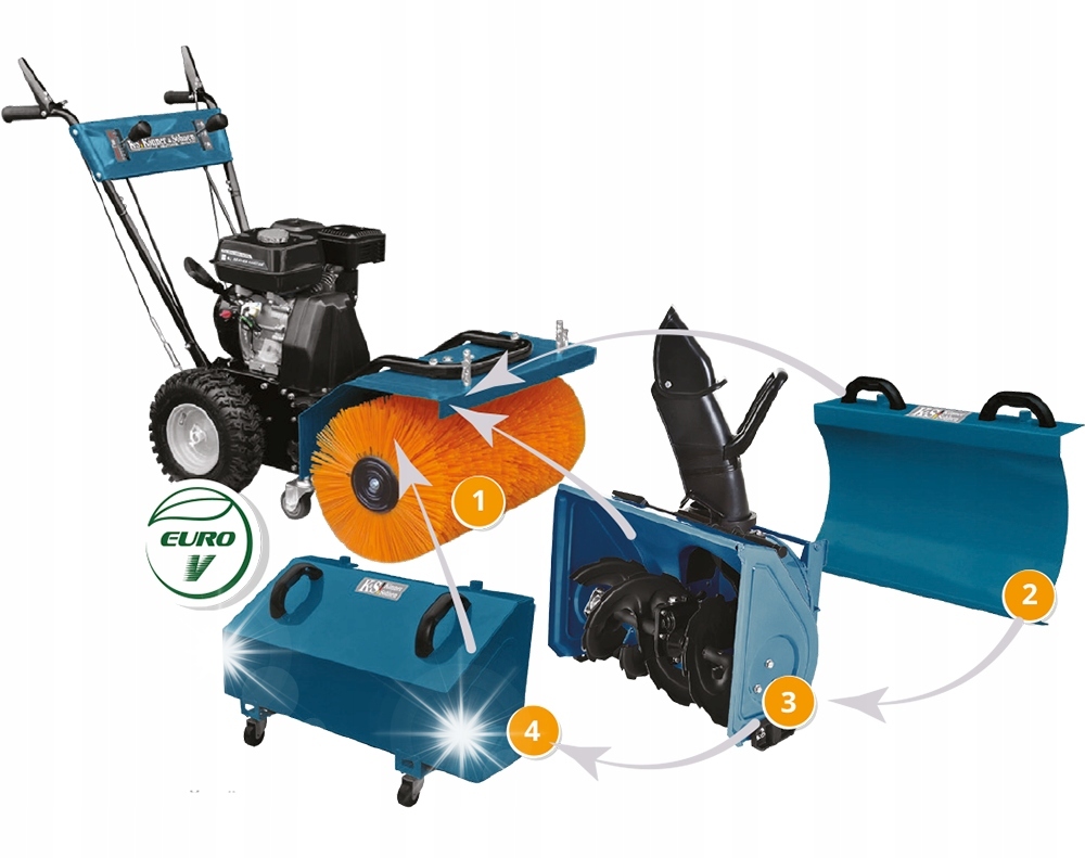 - Высокопроизводительная многофункциональная машина от Könner & Söhnen оснащена надежным бензиновым двигателем K&S мощностью 6,5 л.с., соответствующим последним экологическим стандартам EURO-V.