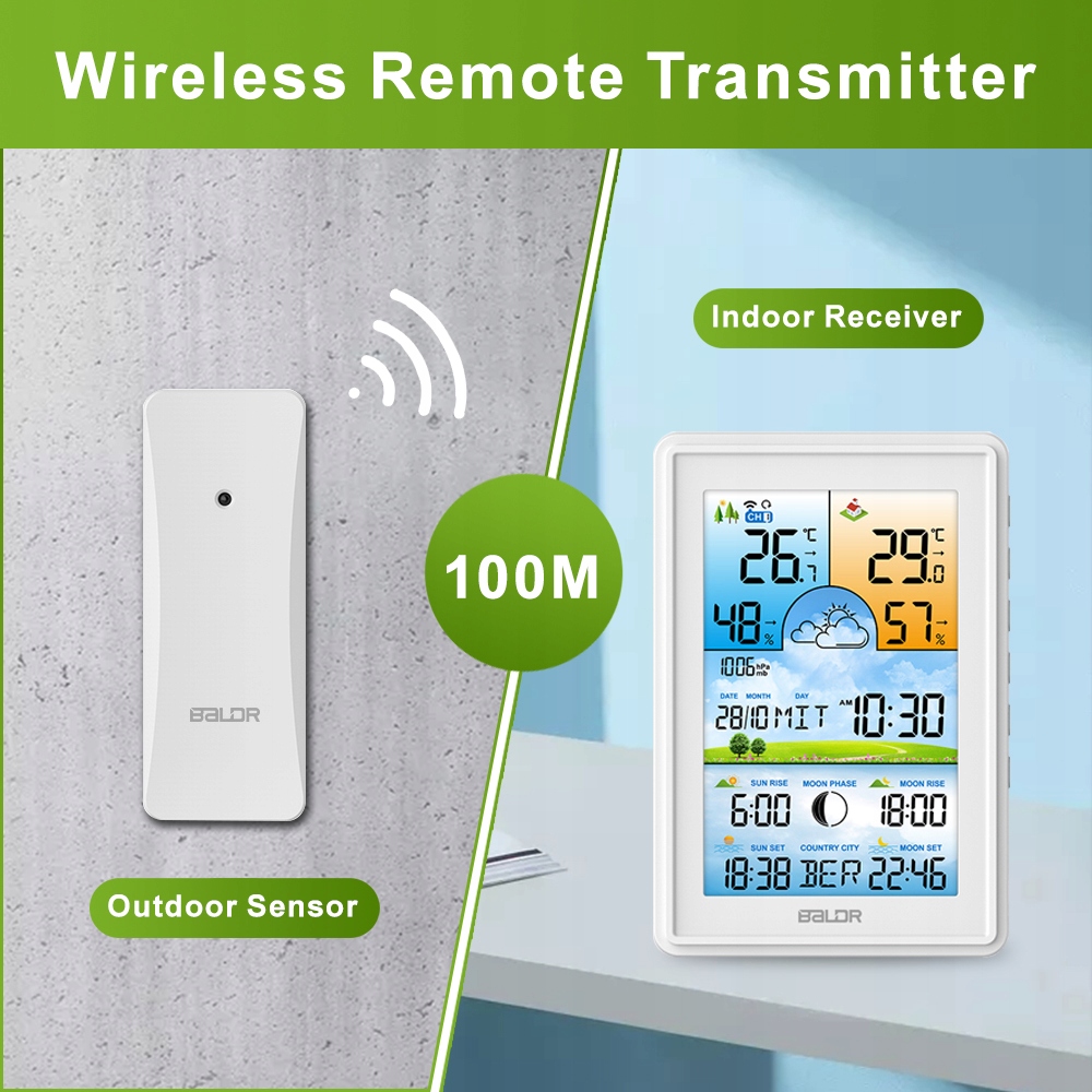 Комнатная метеостанция Baldr B360-V2 оснащена большим, четким цветным ЖК-дисплеем с крупными цифрами. Дисплей с черным фоном демонстрирует минималистичный и современный дизайн беспроводной домашней метеостанции Baldr B360-V2, поэтому она вписывается в любой интерьер.