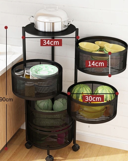 МНОГОФУНКЦИОНАЛЬНАЯ ВРАЩАЮЩАЯСЯ ПОЛКА НА КОЛЕСАХ 5 КОРЗИН ДЛЯ ФРУКТОВ И ОВОЩЕЙ