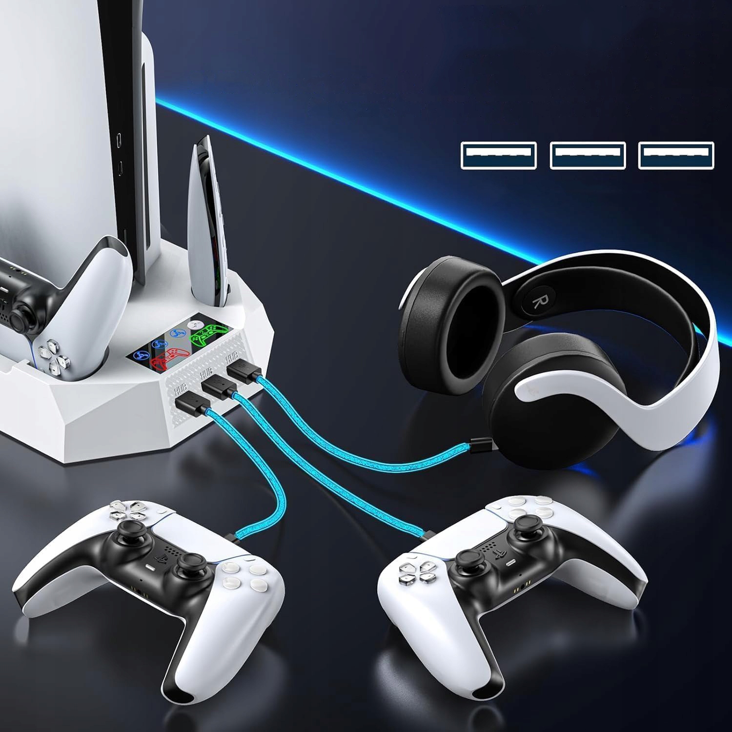 ОХЛАЖДАЮЩАЯ ОСНОВА ДЛЯ PS5 С ВЕНТИЛЯТОРОМ И ЗАРЯДНЫМ УСТРОЙСТВОМ ДЛЯ ДВУХ ПАНЕЛЬ