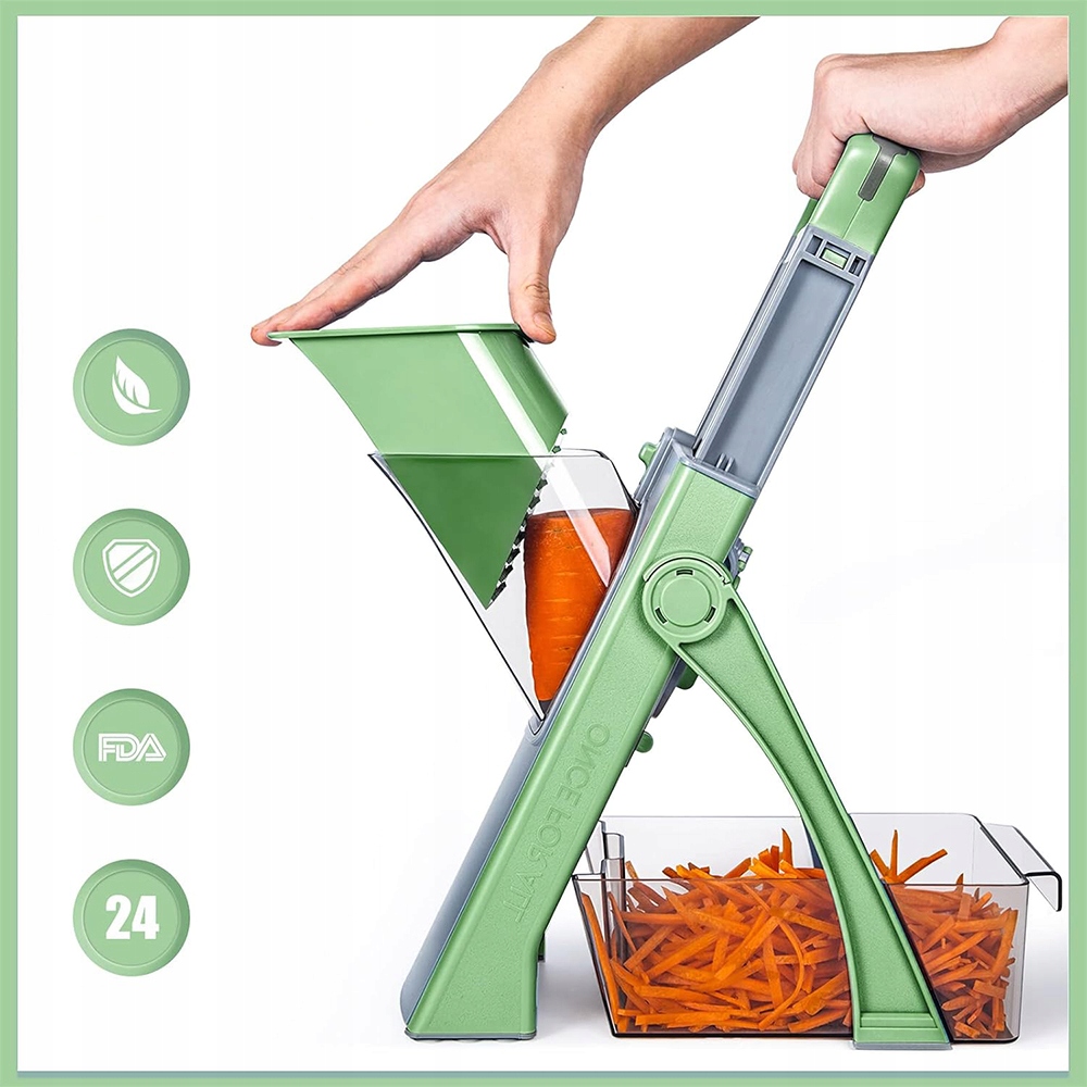 Наш улучшенный слайлер мандолины с большим входом и большей способностью обеспечивает безопасную резку, очистку, разрезание кубиков и нарезание в течение нескольких секунд с любой регулируемой толщиной в диапазоне от 0,1-8 мм и выше 40. Кухонная оттолога идеально подходит для приготовления пищи.