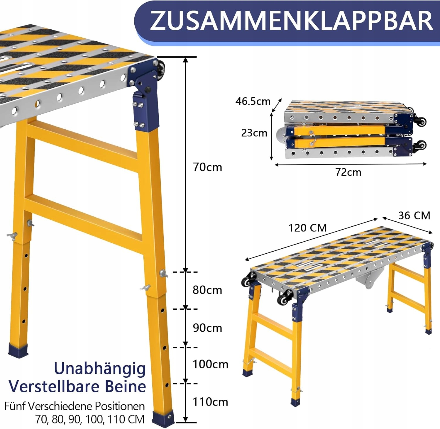 Многофункциональная рабочая платформа с оцинкованным топом, 70-110 см, с правилом