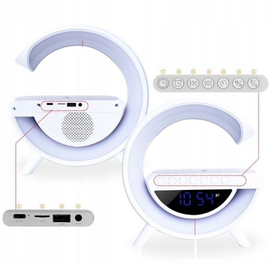 БАГАТОФУНКЦІОНАЛЬНА РОЗУМНА LED RGB ЛАМПА ЗАРЯДНИЙ ПРИСТРІЙ ДИНАМІК FM-РАДІО БУДИЛЬНИК