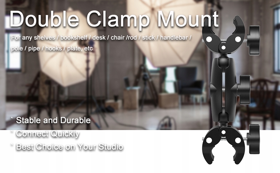 【Двойные зажимные крепления】Рычаг с двойным волшебным гнездом подключается к двойному зажимному креплению, которое поддерживает регулировку вращения на 360 ° по мере необходимости, особенно во время фото- и видеозаписи, когда вам нужны дополнительные аксессуары или инструменты.