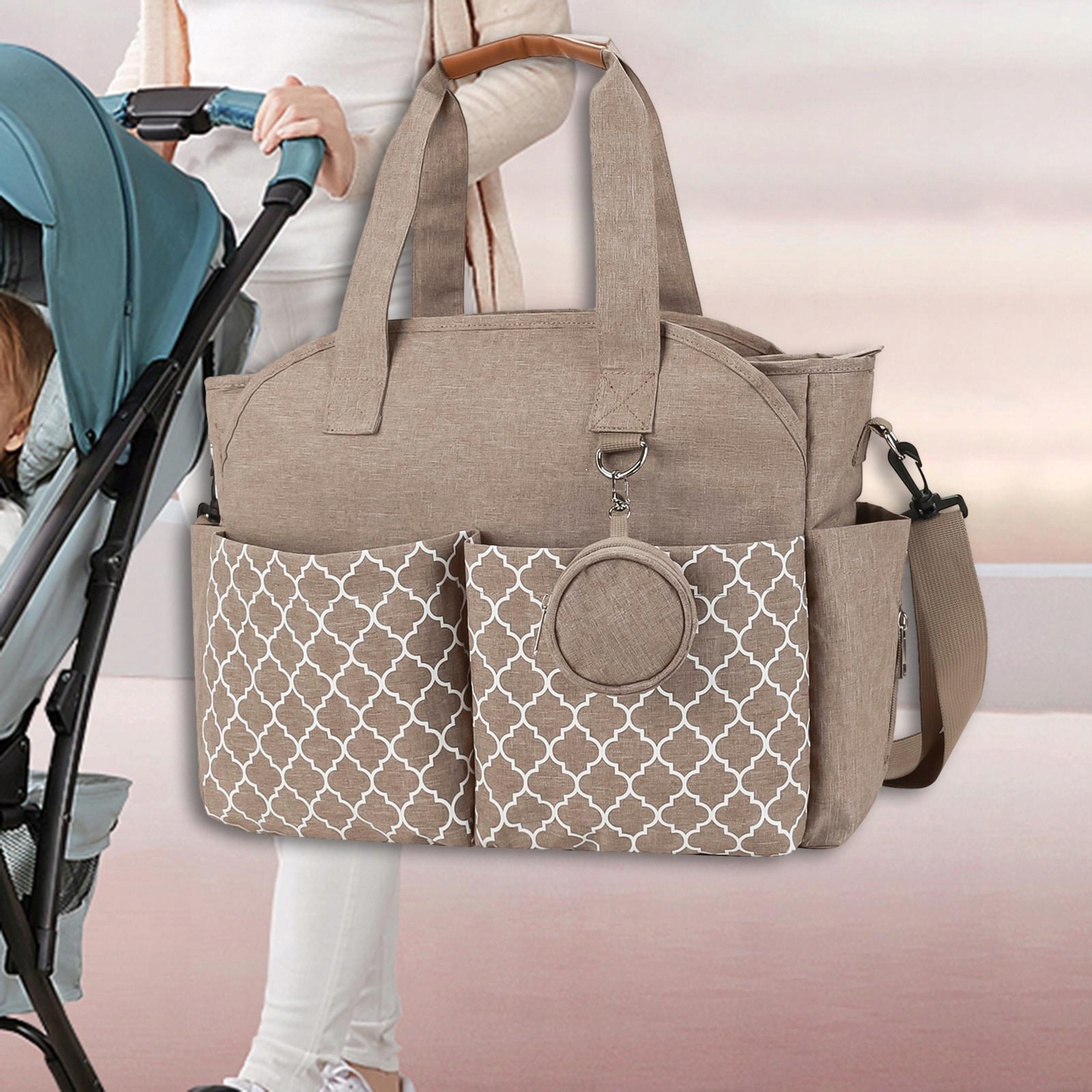 [Удобно]: сумка для хранения для мамы и ребенка, регулируемые лямки через плечо, ремень и пряжка с удобными зажимами, независимо от того, идете ли вы или бежите.