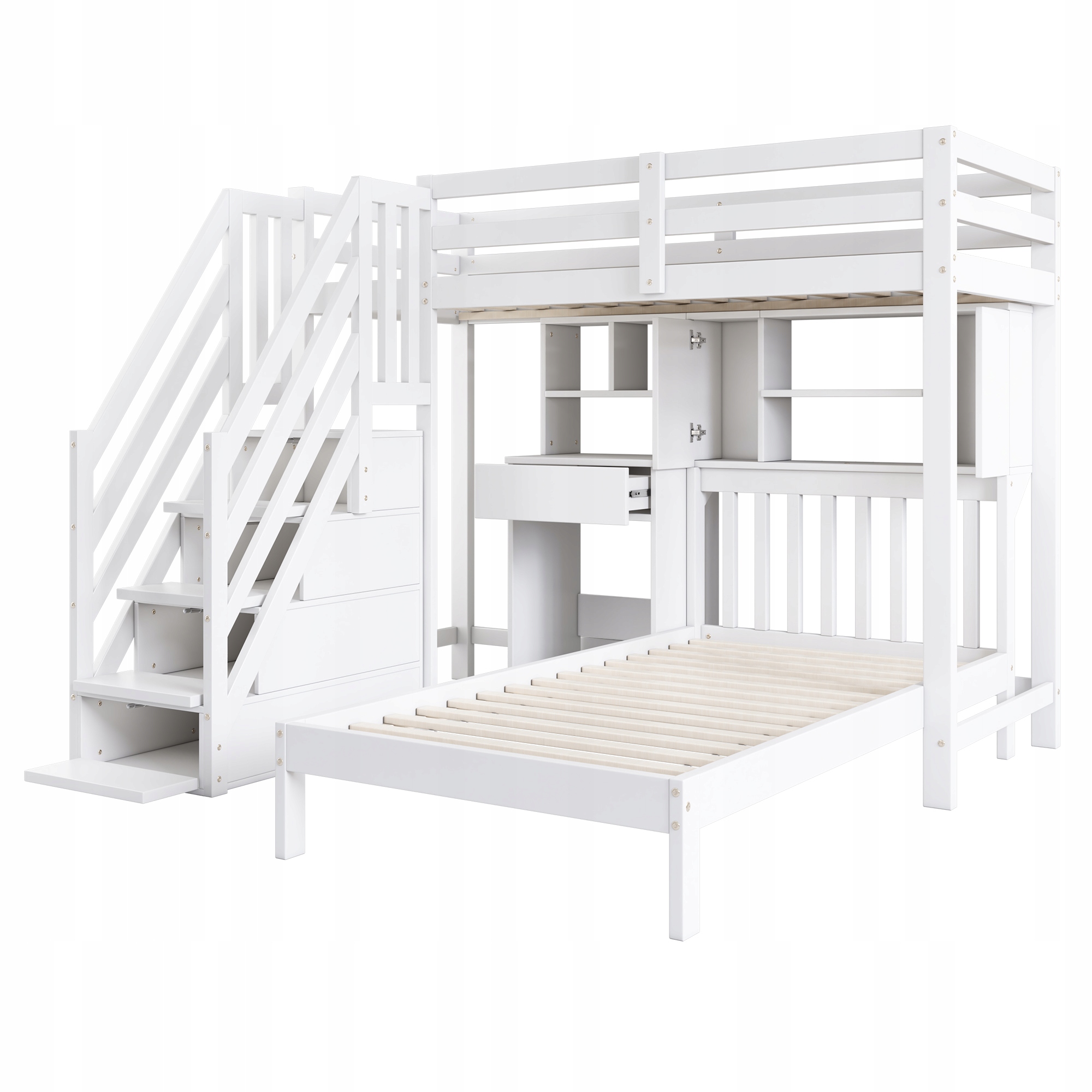 Многофункциональная двухъярусная кровать с столом и полкой, белый, 90*200 см.