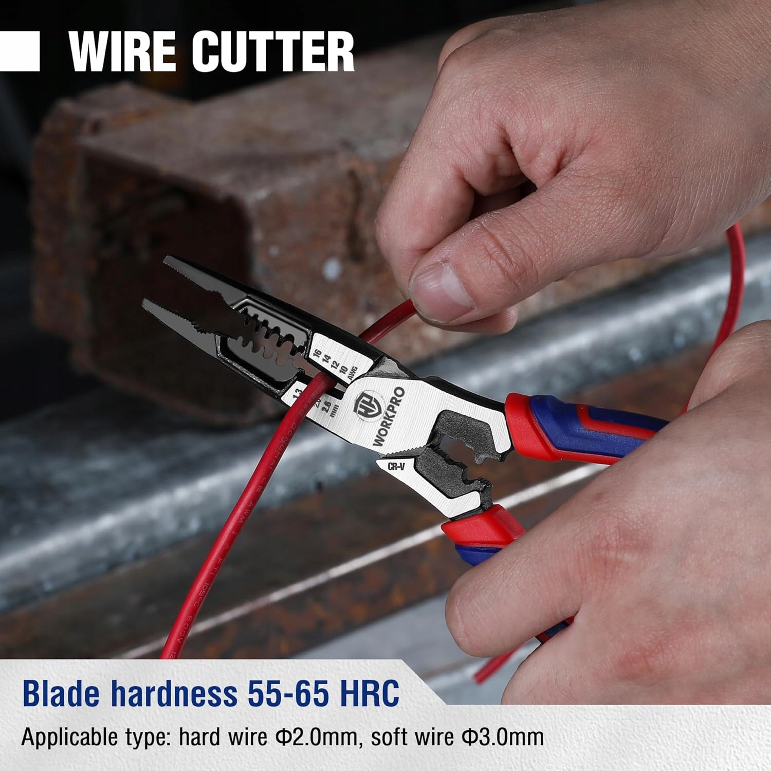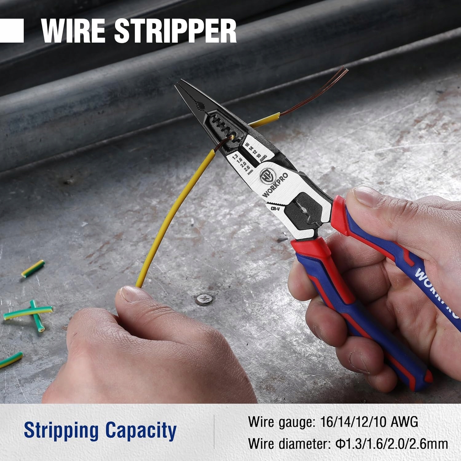 workpro Узкие плоскогубцы 7in1 h1> изоляционного съемника, резак, крипер, ключ, длинный, 200 мм, для проводов, h1> 16-10 awg (1,3-2,6 мм), многофункциональный, Cr -V, для электриков h1> .
