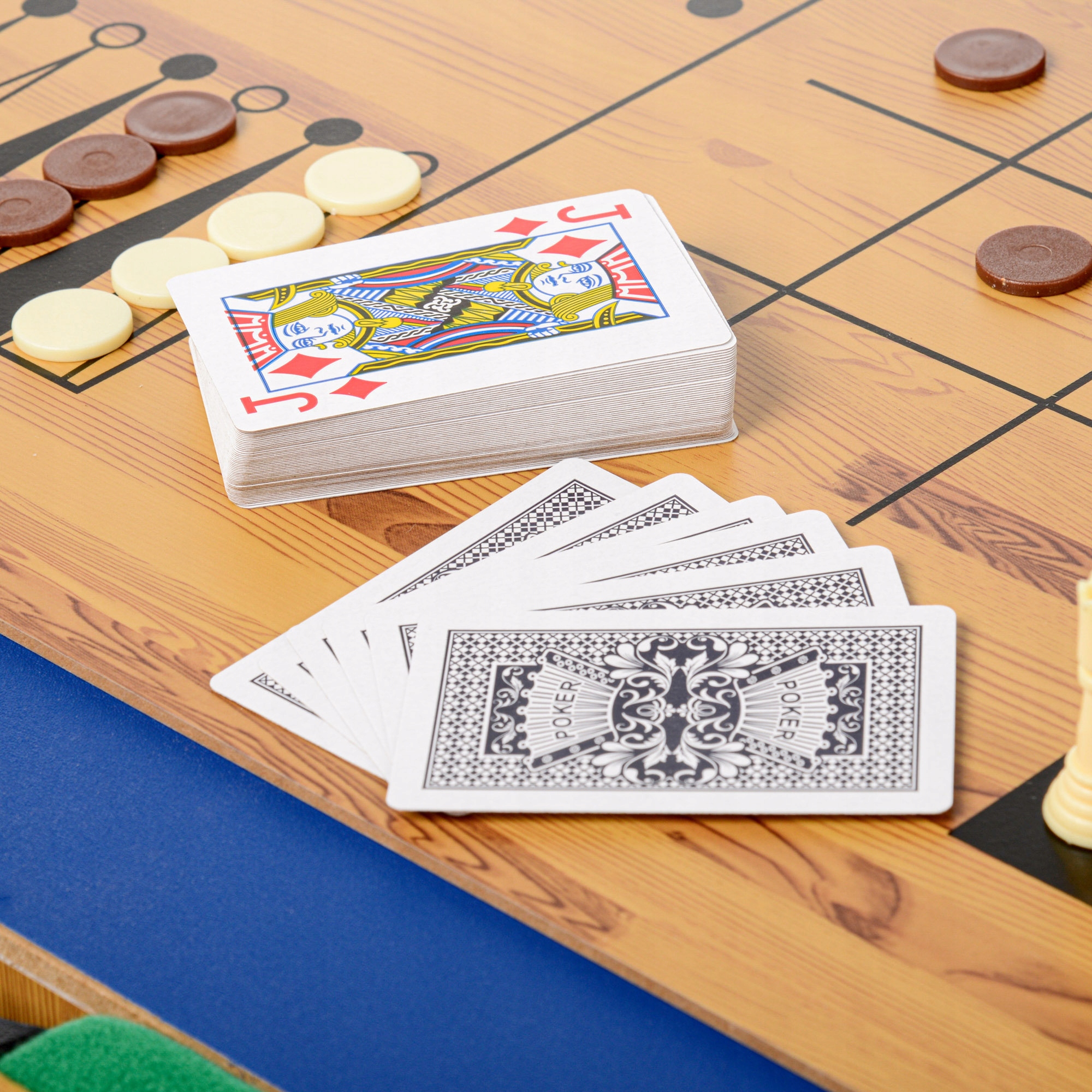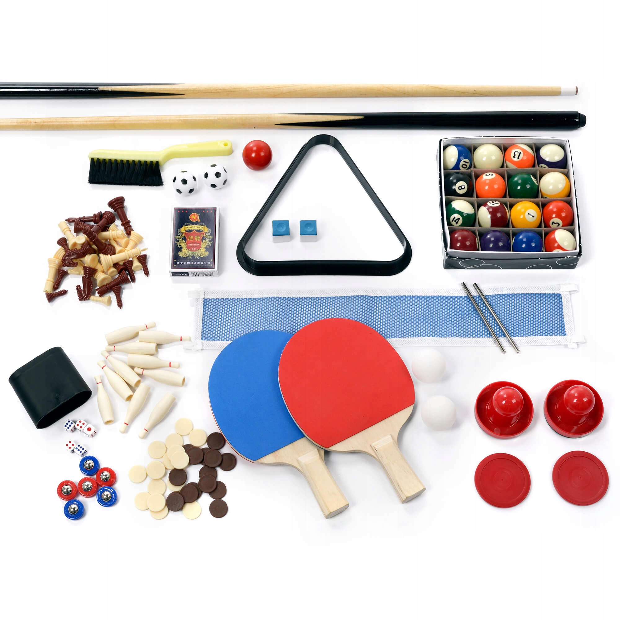 - Модель: 10 в 1 - карты, нарды, шаффл, боулинг, шашки, шахматы, настольный теннис, аэрохоккей, бильярд , настольный футбол плюс 2 бесплатные игры — крестики-нолики, кости.