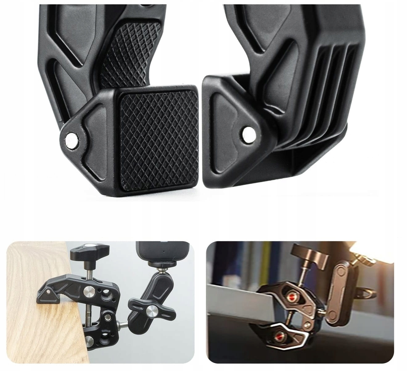 - ✔️ Многофункциональность: Зажимной держатель Telesin — это универсальный инструмент, который можно использовать во многих ситуациях и на различных поверхностях, например в качестве руля велосипеда, мотоцикла, поручня, штатива или ветки.