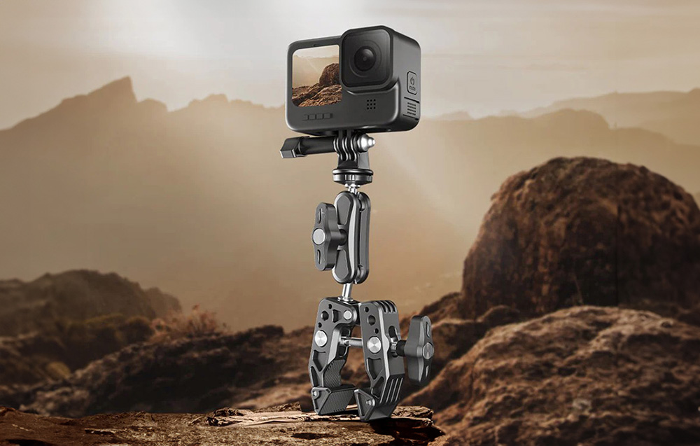Создавайте потрясающие материалы с разных точек зрения! Многофункциональное зажимное крепление Telesin позволит закрепить камеру на руле мотоцикла, поручне или даже ветке. Благодаря возможности регулировки диаметра вы легко сможете адаптировать его под свои нужды. Надежное крепление в сочетании с нескользящими элементами обеспечивают необходимую устойчивость во время записи, а благодаря 2 шаровым шарнирам можно установить камеру в любом положении. . Также допускается установка дополнительных аксессуаров.