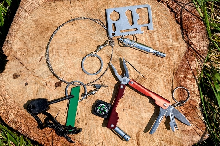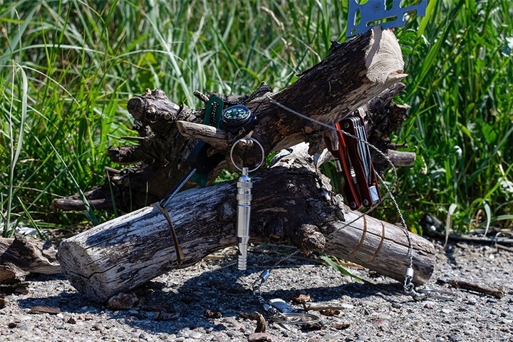 Еще один элемент набора — компас, который позволяет легко ориентироваться, и мультитул, позволяющий выполнять множество различных действий. Струнная пила длиной 70 см также является очень полезным инструментом, позволяющим пилить древесину или ветки.