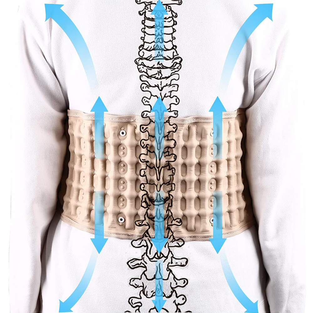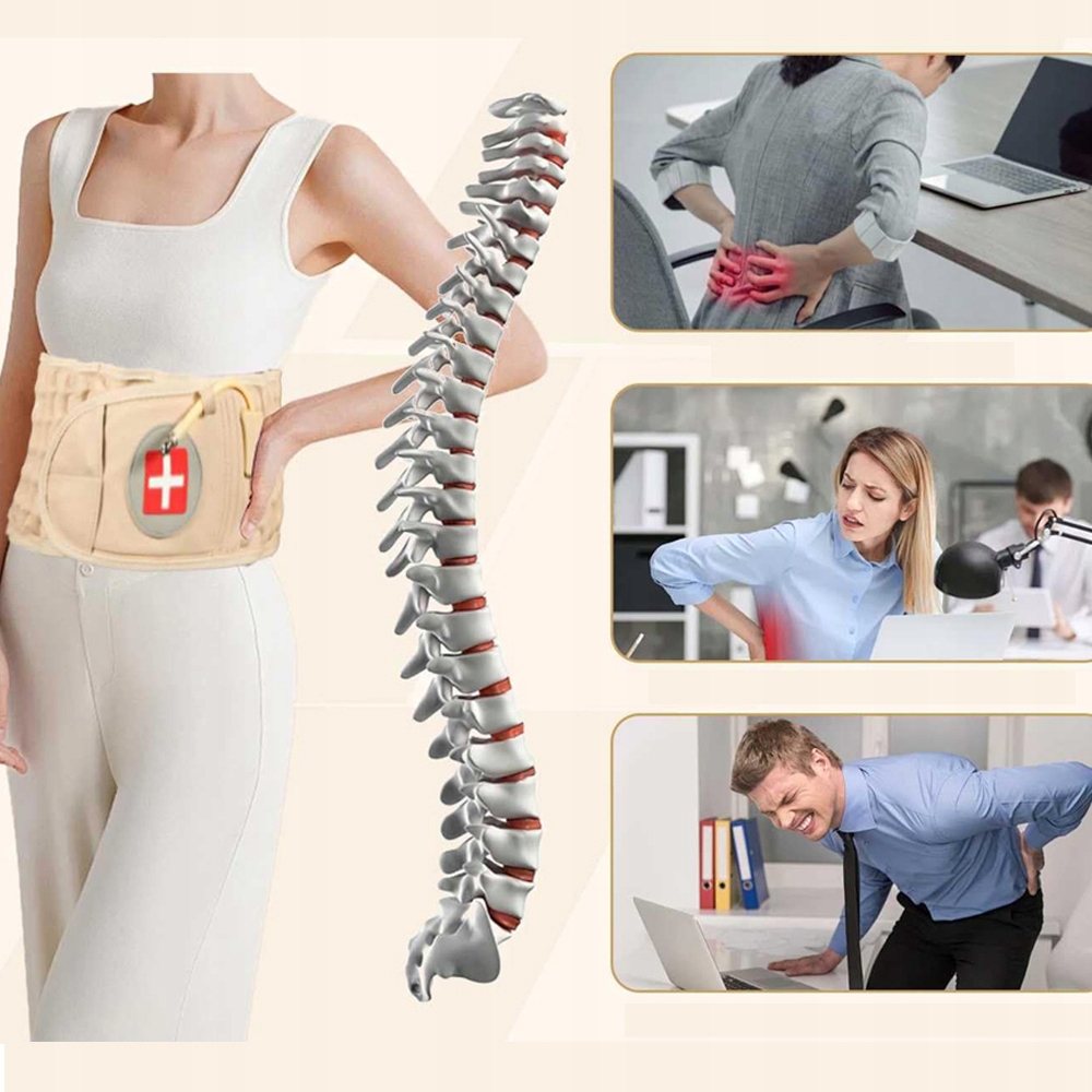 • Пояс содержит несколько воздушных столбцов, которые при надувании обхватывают поясницу, создавая дугообразную тракцию, которая эффективно снимает боли в пояснице, вызванные грыжей диска, напряжением мышц поясничного отдела позвоночника и сжатием поясничных нервов.