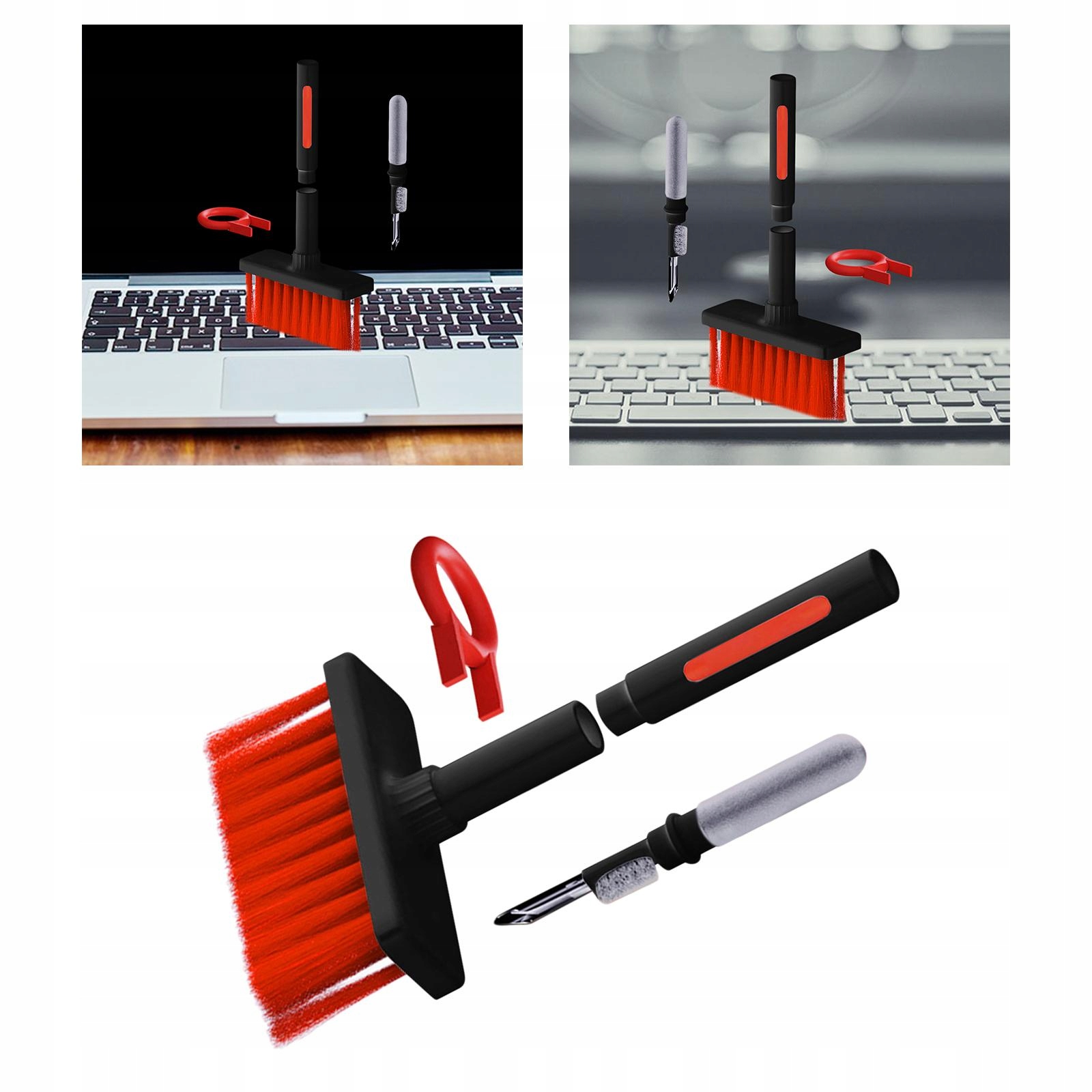 Раздельный двойной: очиститель для компьютера 5-в-1 с нейлоновой щетиной, флокирующейся губкой, щетиной высокой плотности, металлическими наконечниками и съемниками клавиш. Скрытая конструкция с двойной головкой отвечает различным потребностям в очистке.