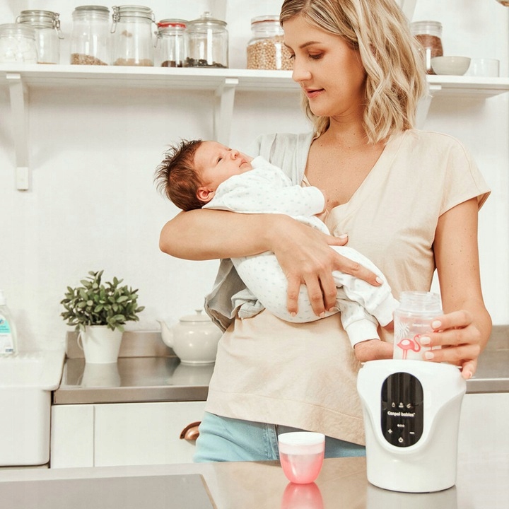 Гарантирует комфорт и удобство использования. Он имеет сенсорную и интуитивно понятную панель управления и функцию поддержания температуры — даже всю ночь напролет! Он быстро и равномерно подогревает молоко и блюда в баночках, безопасно размораживает, а при необходимости также дезинфицирует бутылочки и соски.