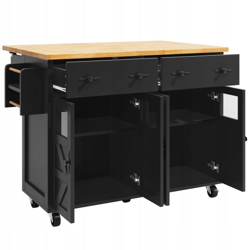 Высококачественная сервировочная тележка: изготовлена из плит МДФ/ПБ, с дверцами из безопасного стекла и столешницей из дерева. Металлические ручки и прочная конструкция делают эту мобильную сервировочную тележку чрезвычайно прочной.