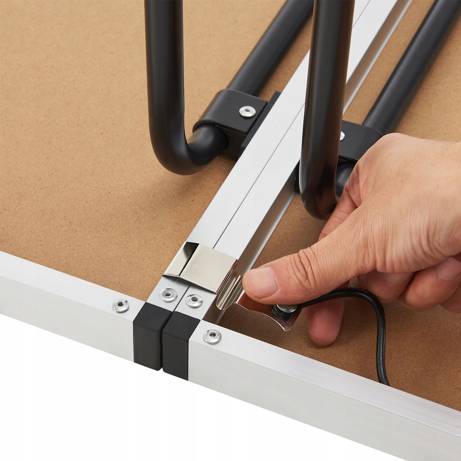- Каждый боковой столик имеет 4 ножки для надежной подставки. Петли дополнительно стабилизируют его. Каждый стол регулируется по высоте от 73 до 94 см в 4 ступени.