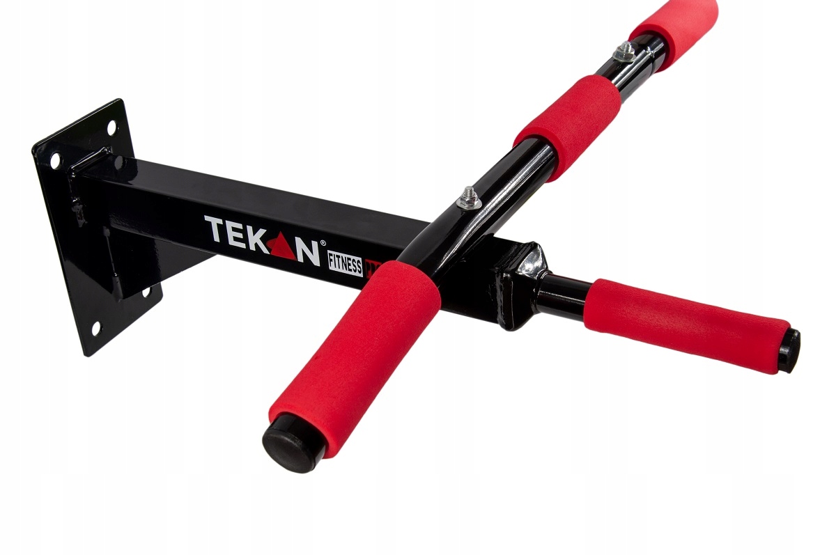 - Черная отделка штанги с красными поролонами смотрится великолепно, а большой логотип польского бренда TEKAN FITNESS PRO дополняет впечатляющий внешний вид всей конструкции.